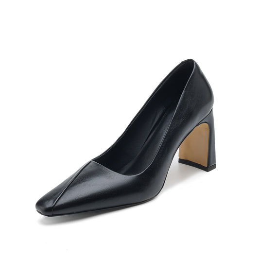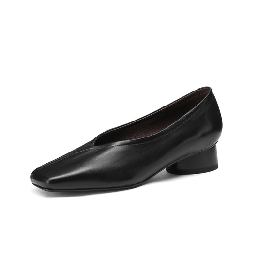TinaCus Handmade Genuine Leather Women's Square Toe Spool Heel Pumps