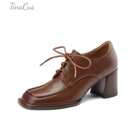TinaCus Women's Handmade Genuine Leather Block Heel Lace Up Pumps Shoes