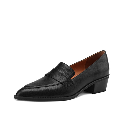TinaCus Women's Genuine Leather Handmade Pointed Toe Slip On Mid Kitten Heel Office Loafers Pumps Shoes