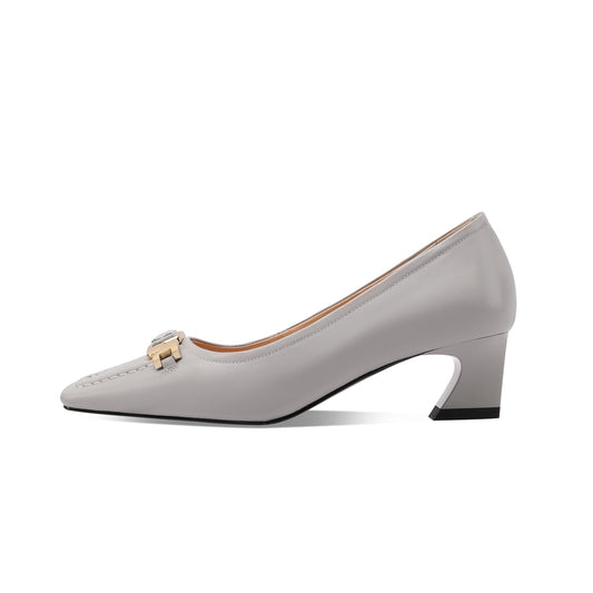 TinaCus Women's Handmade Genuine Leather Buckle Chunky Heel Side Zip Pumps