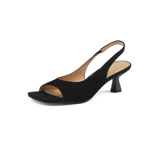 TinaCus Women's Genuine Leather Handmade Peep Toe Mid Kitten Heel Sexy Slingback Sandals Pumps Shoes
