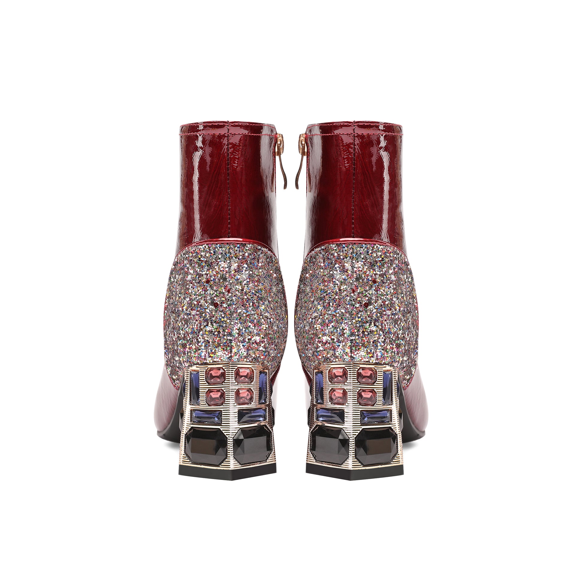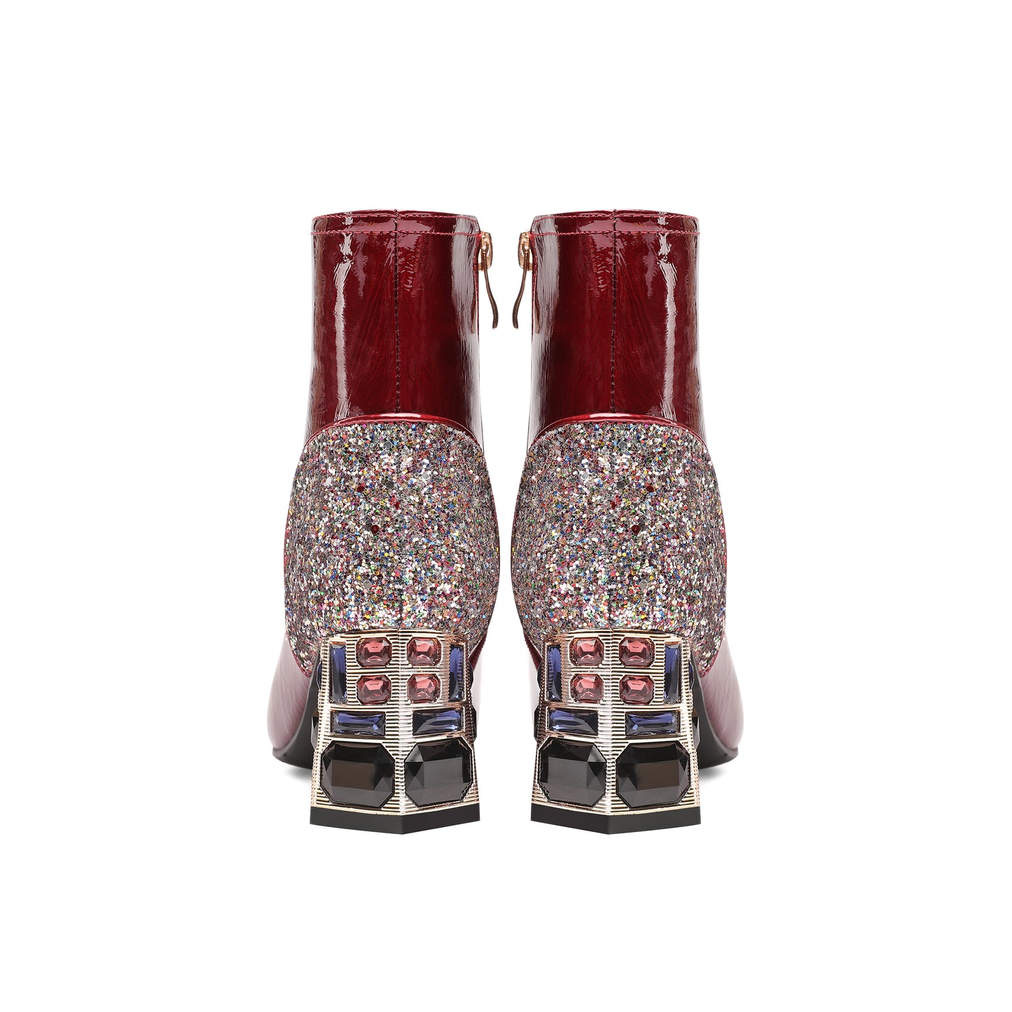 These stylish boots are characterized by pointed toe, mid chunky heels and rhinestone decoration. They go well with different outfits and will could add polish to your chic look.