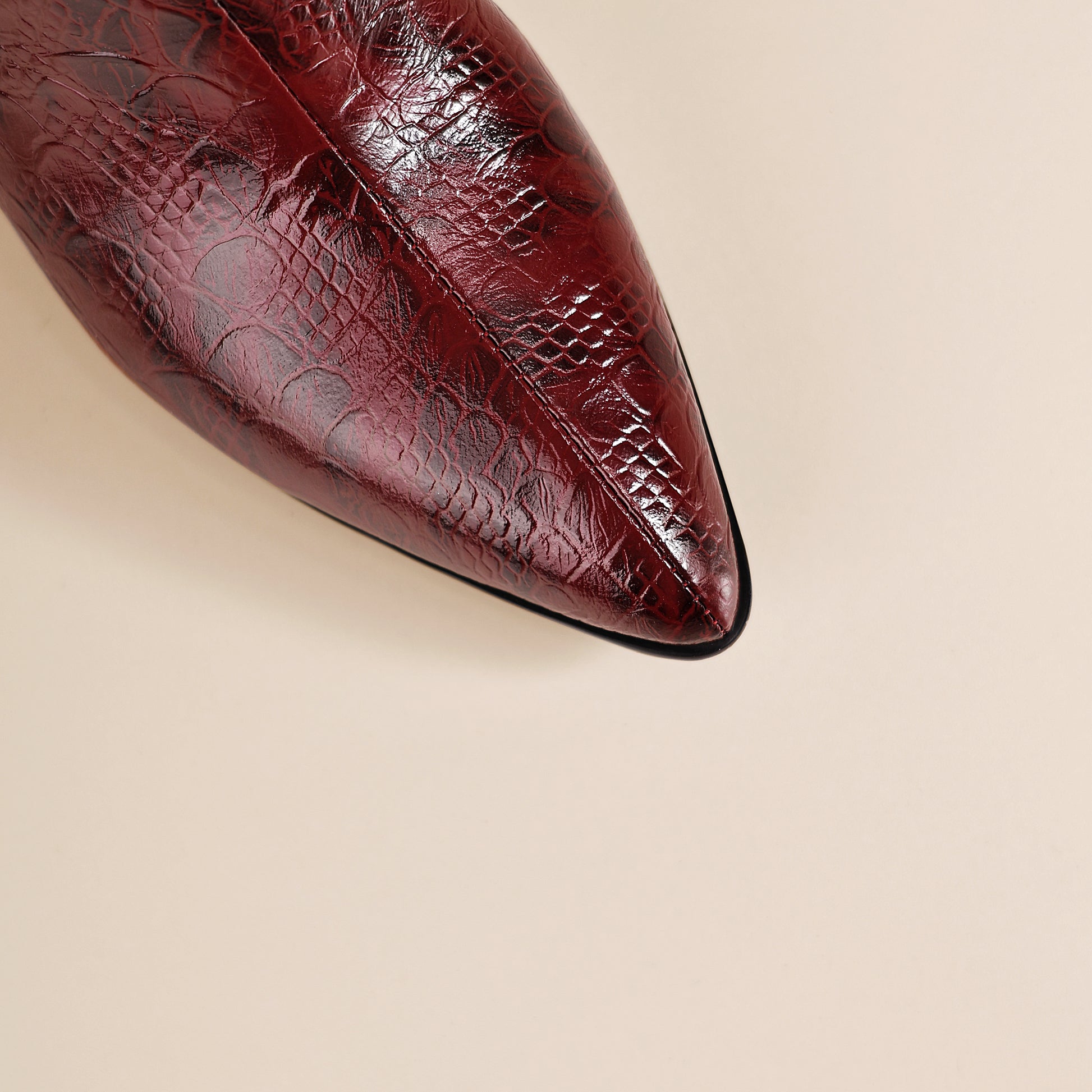 Ankle boots designed with pointed toe, back zipper, genuine leather and chunky heels can go with kinds of outfits
