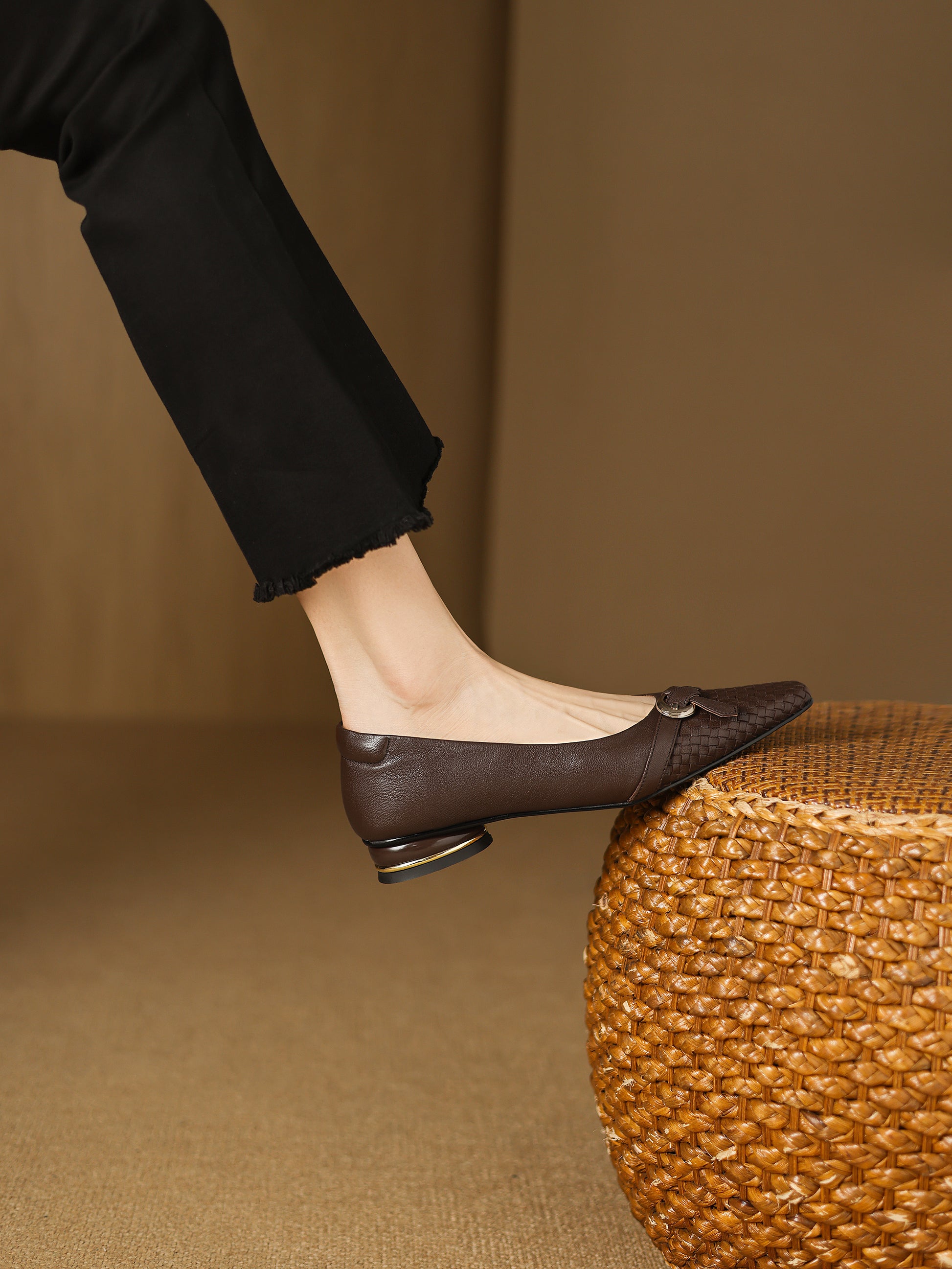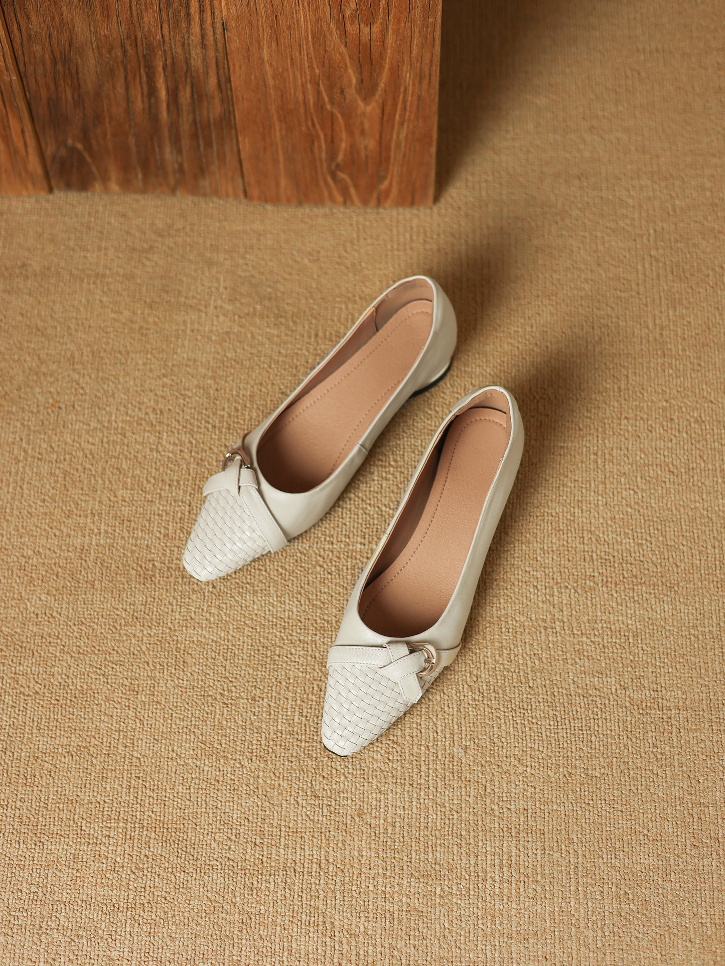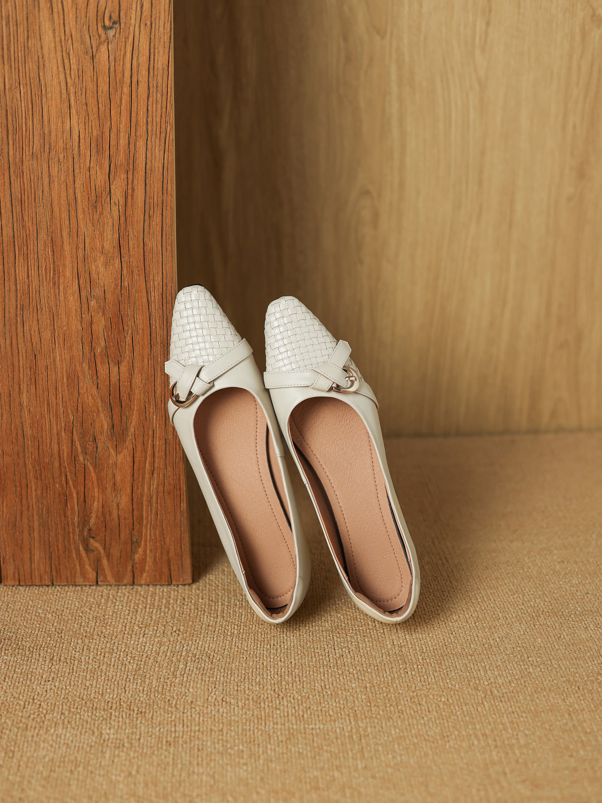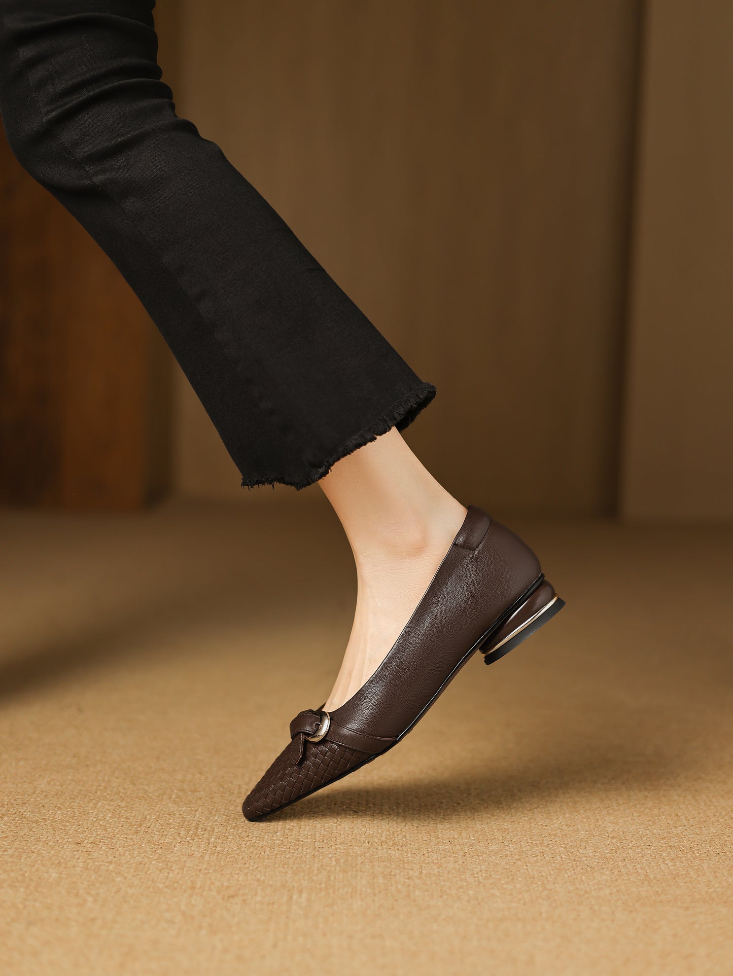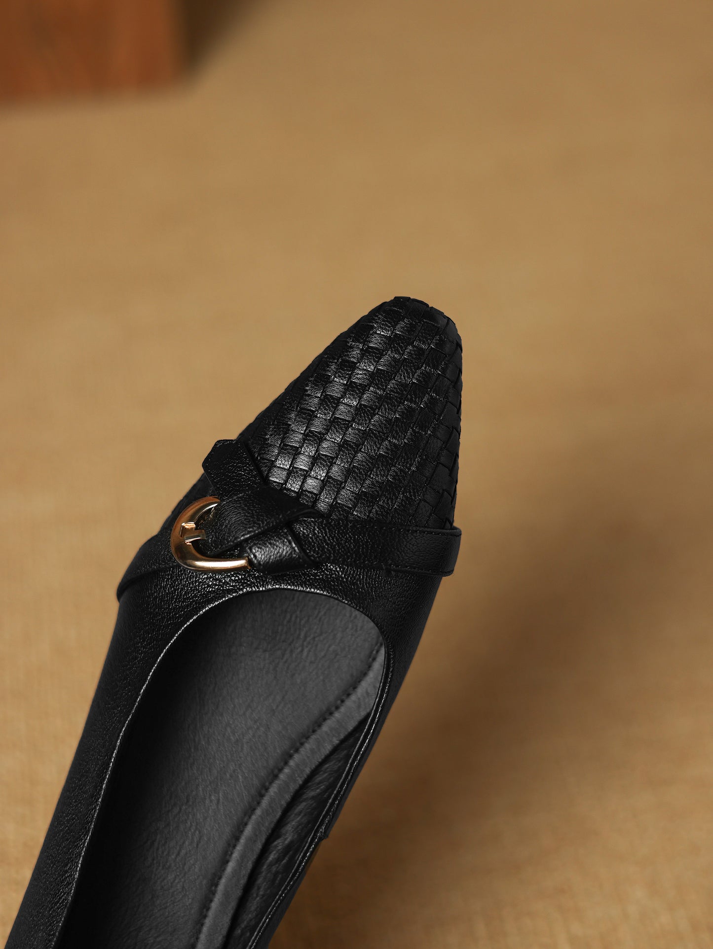 TinaCus Handmade Women's Genuine Leather Closed Toe Decor Belt Woven Slip-on Office Ballet Flats