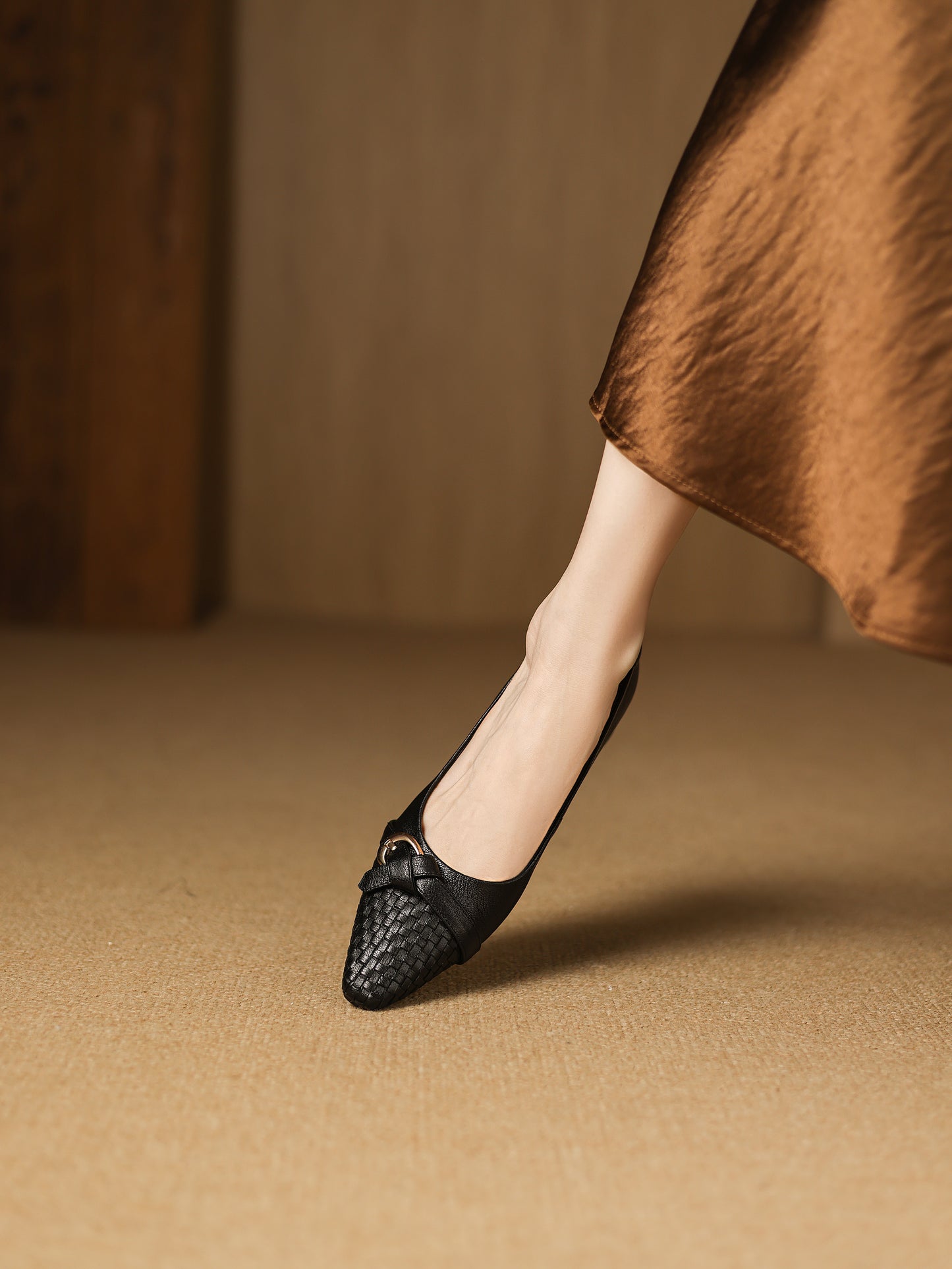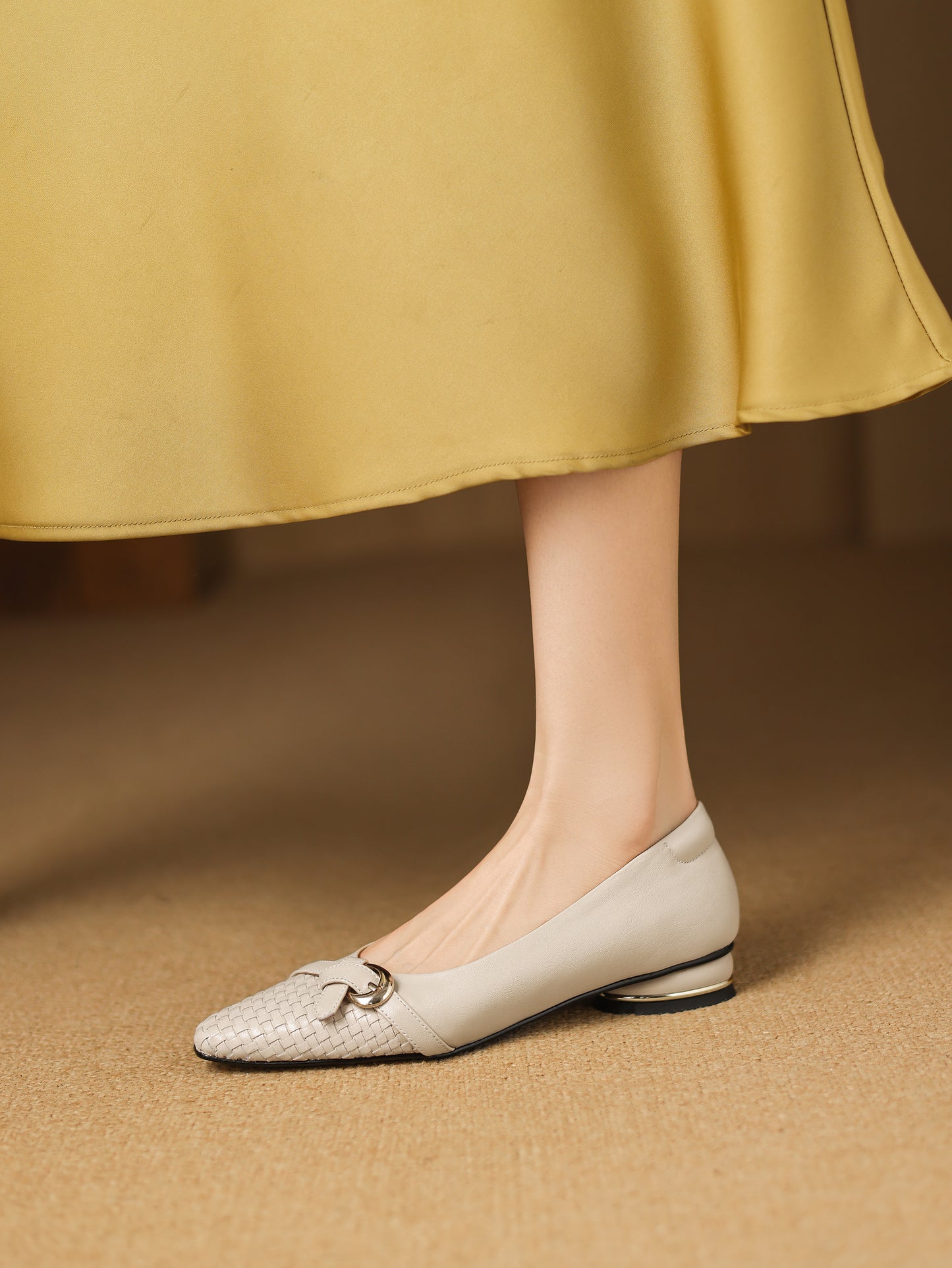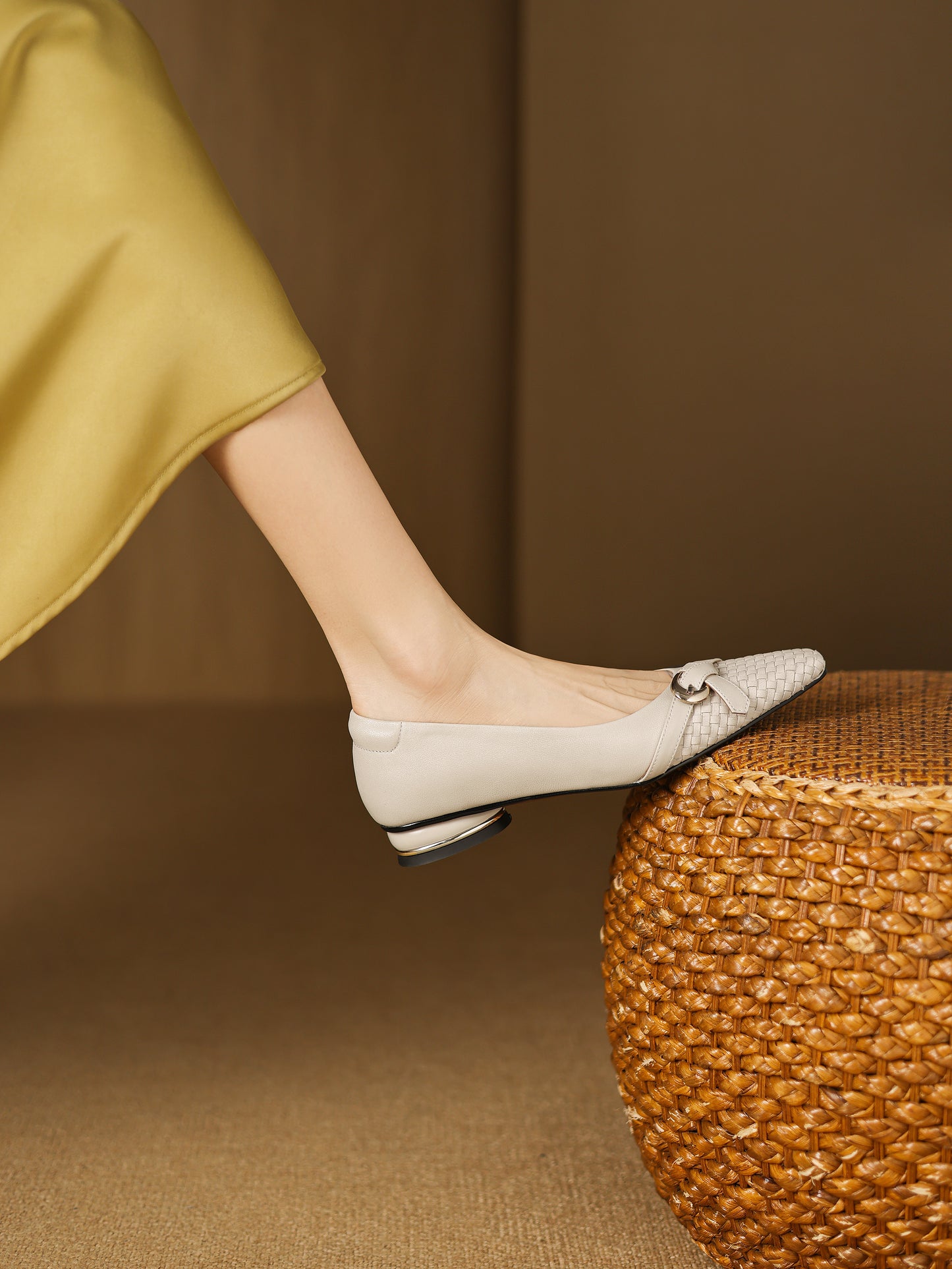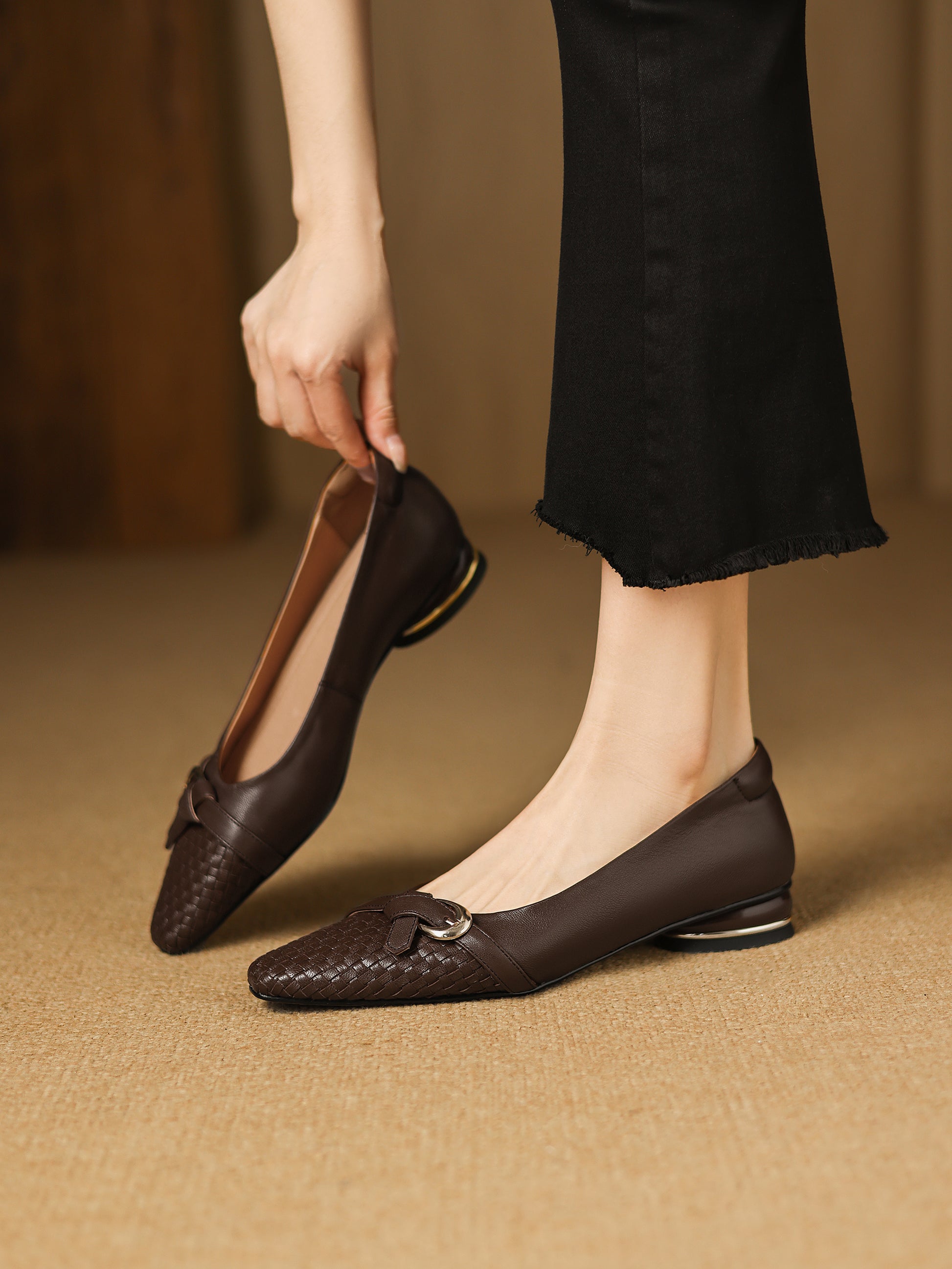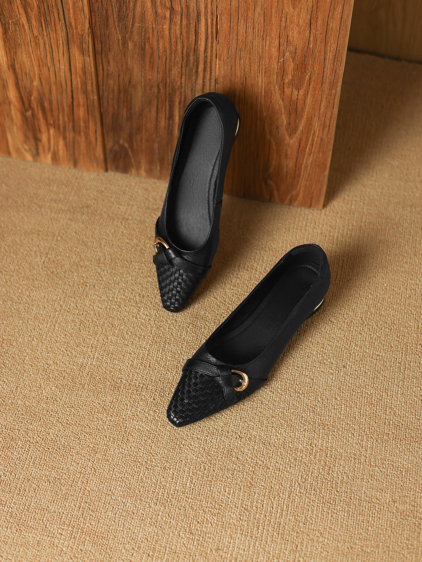 TinaCus Handmade Women's Genuine Leather Closed Toe Decor Belt Woven Slip-on Office Ballet Flats