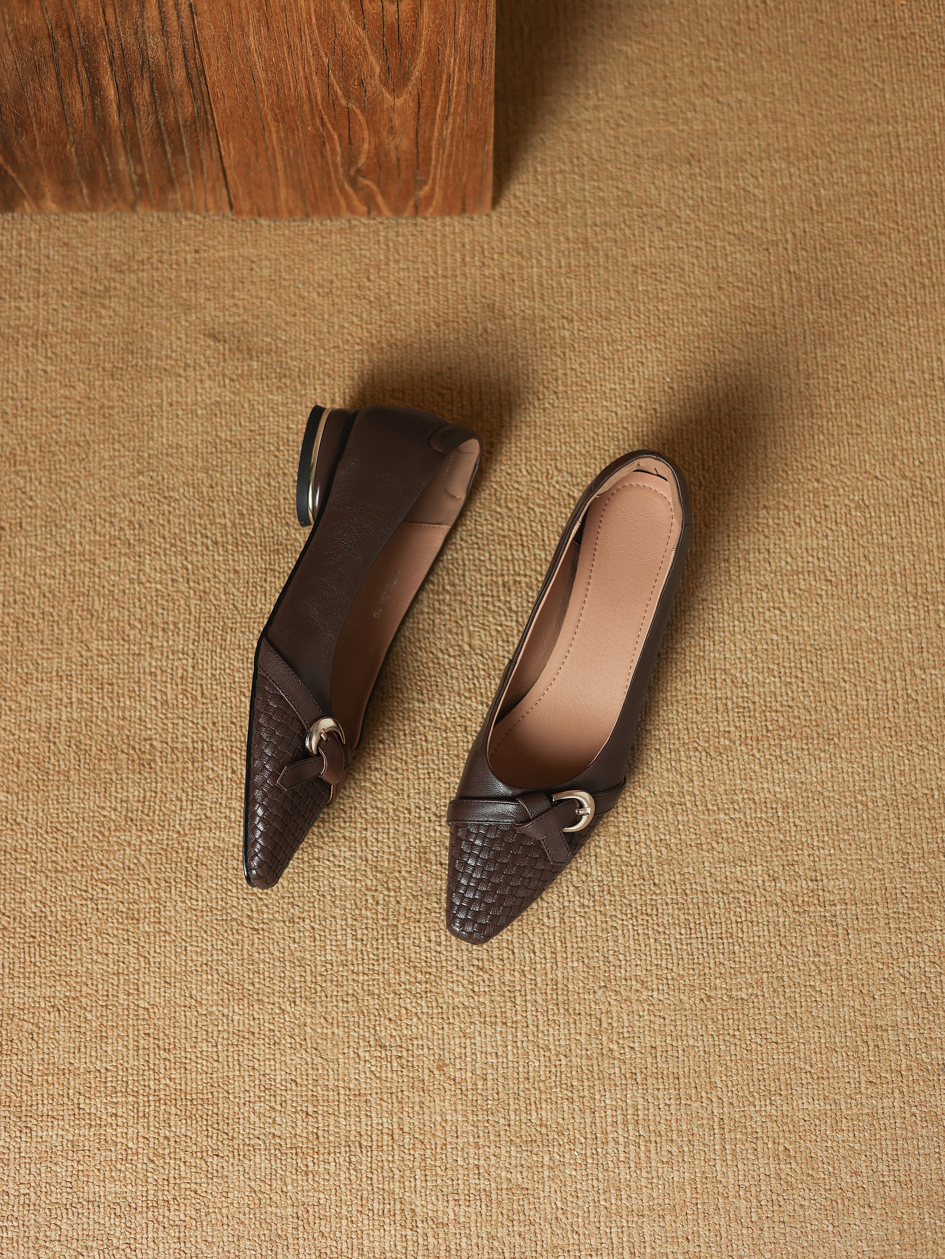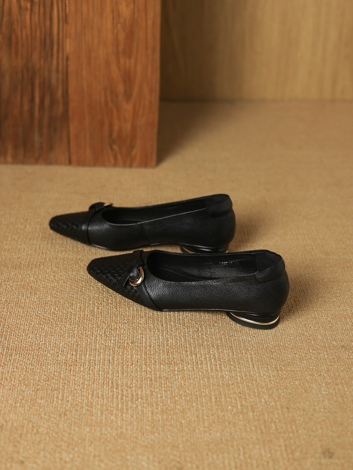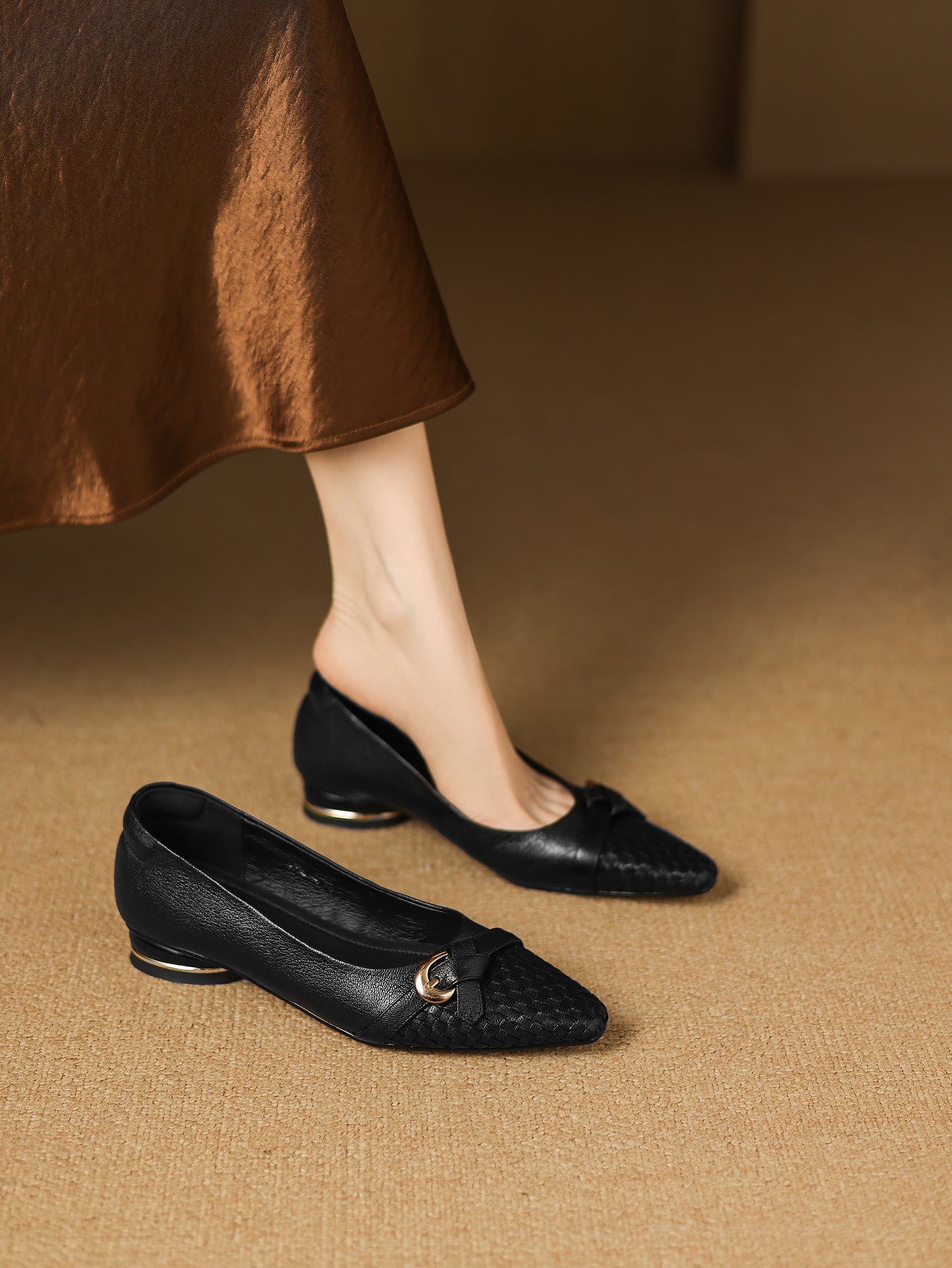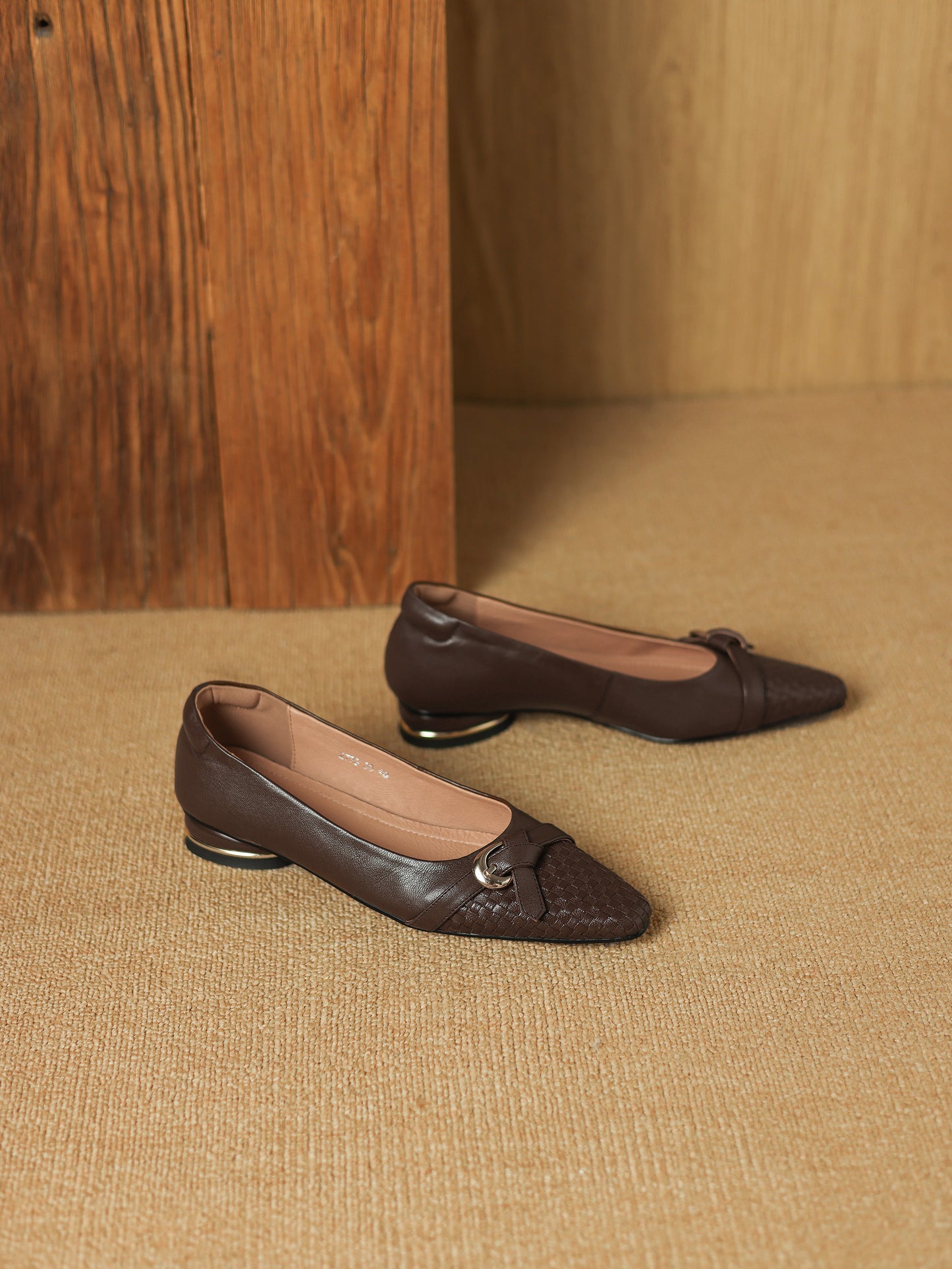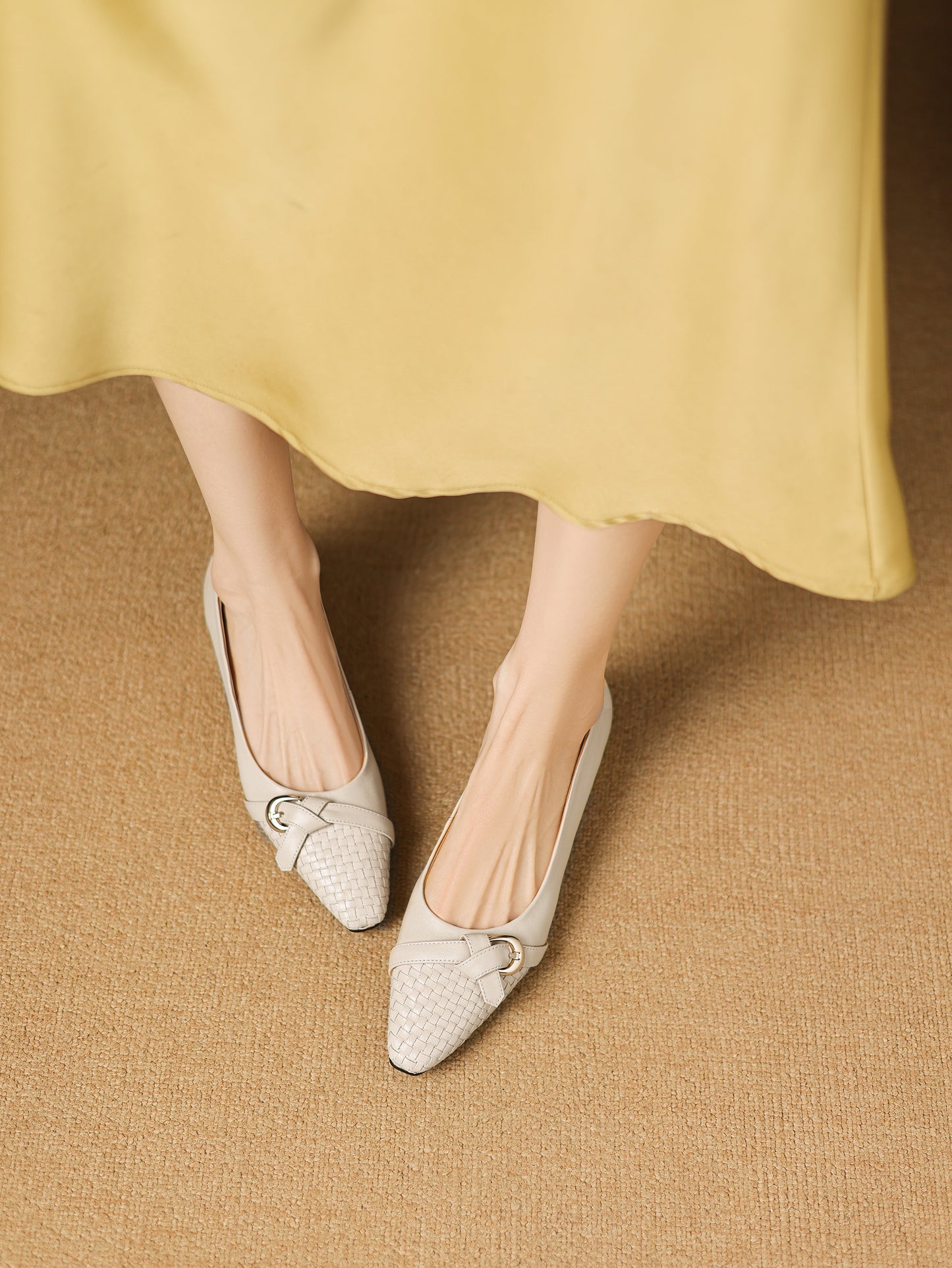 TinaCus Handmade Women's Genuine Leather Closed Toe Decor Belt Woven Slip-on Office Ballet Flats