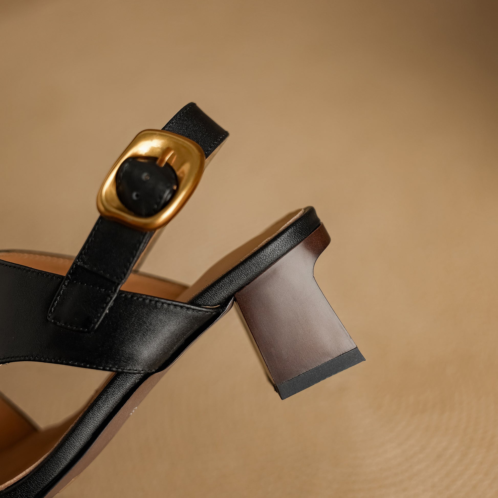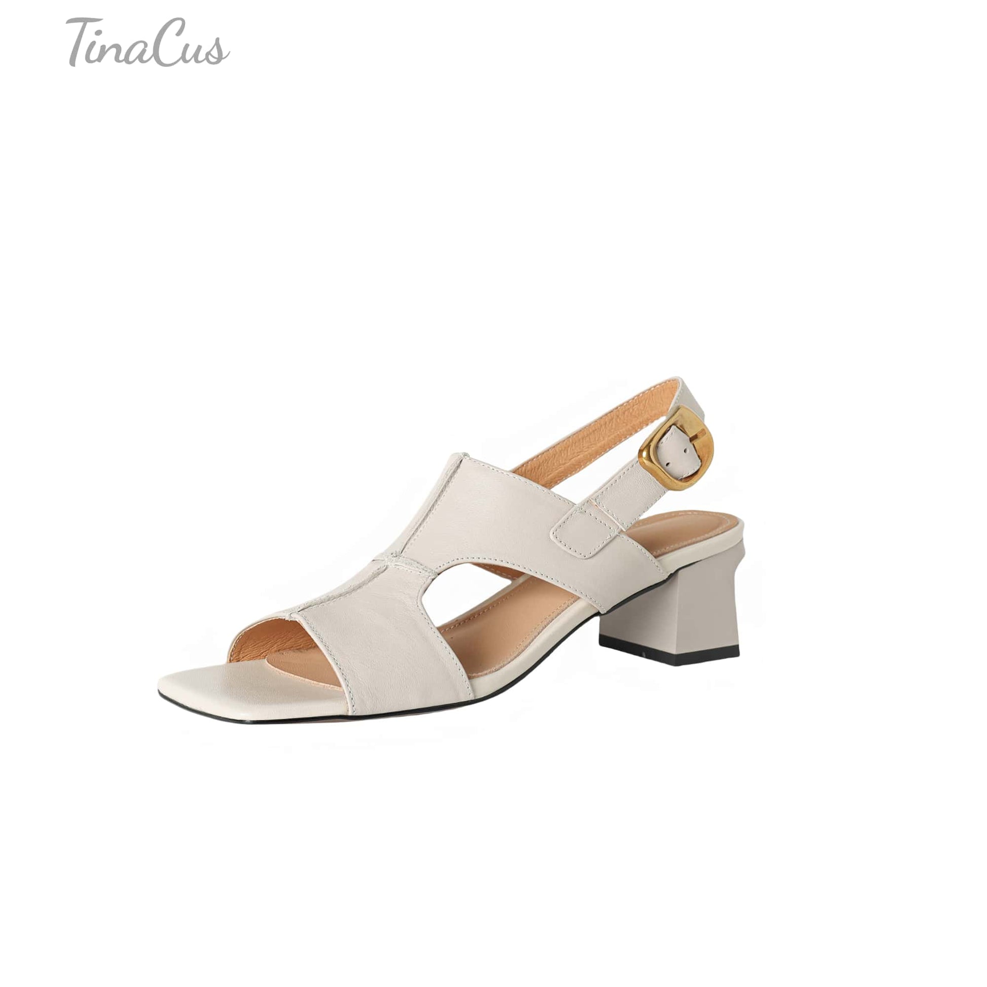 TinaCus Handmade Women's Genuine Leather Peep Toe Slingback Hollow-out Block Heel Comfort Sandals