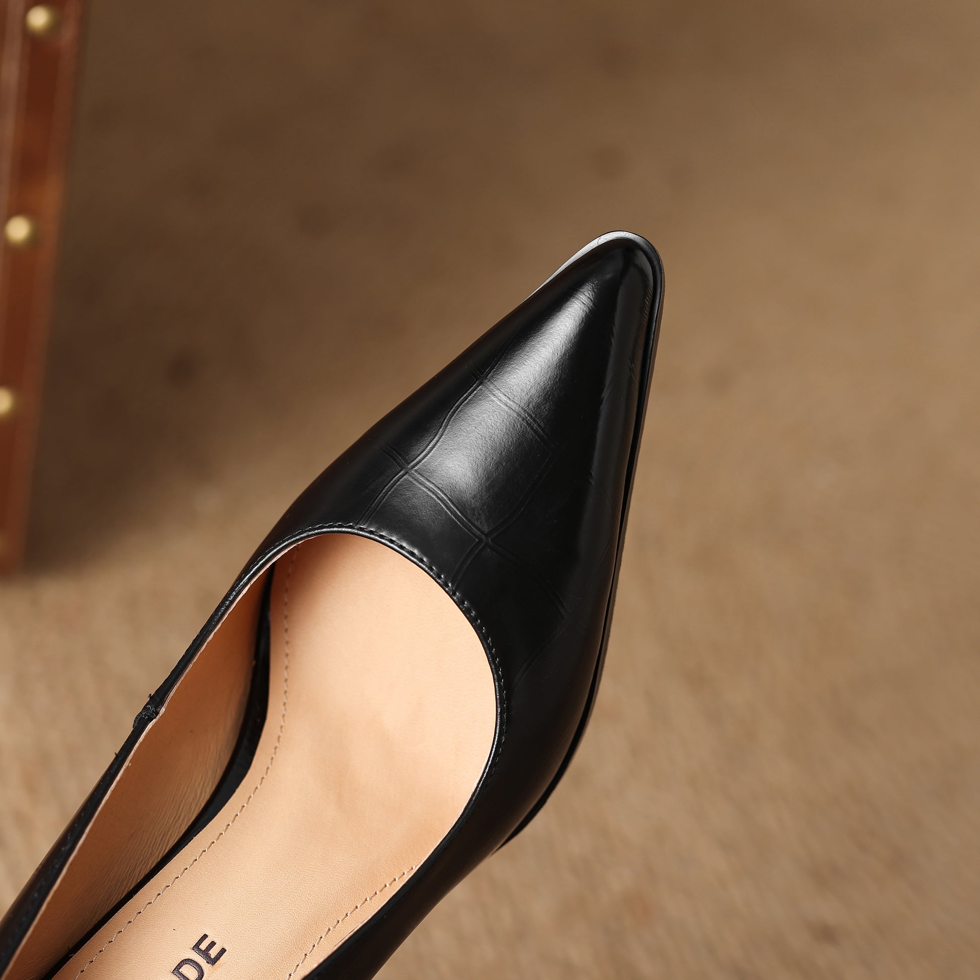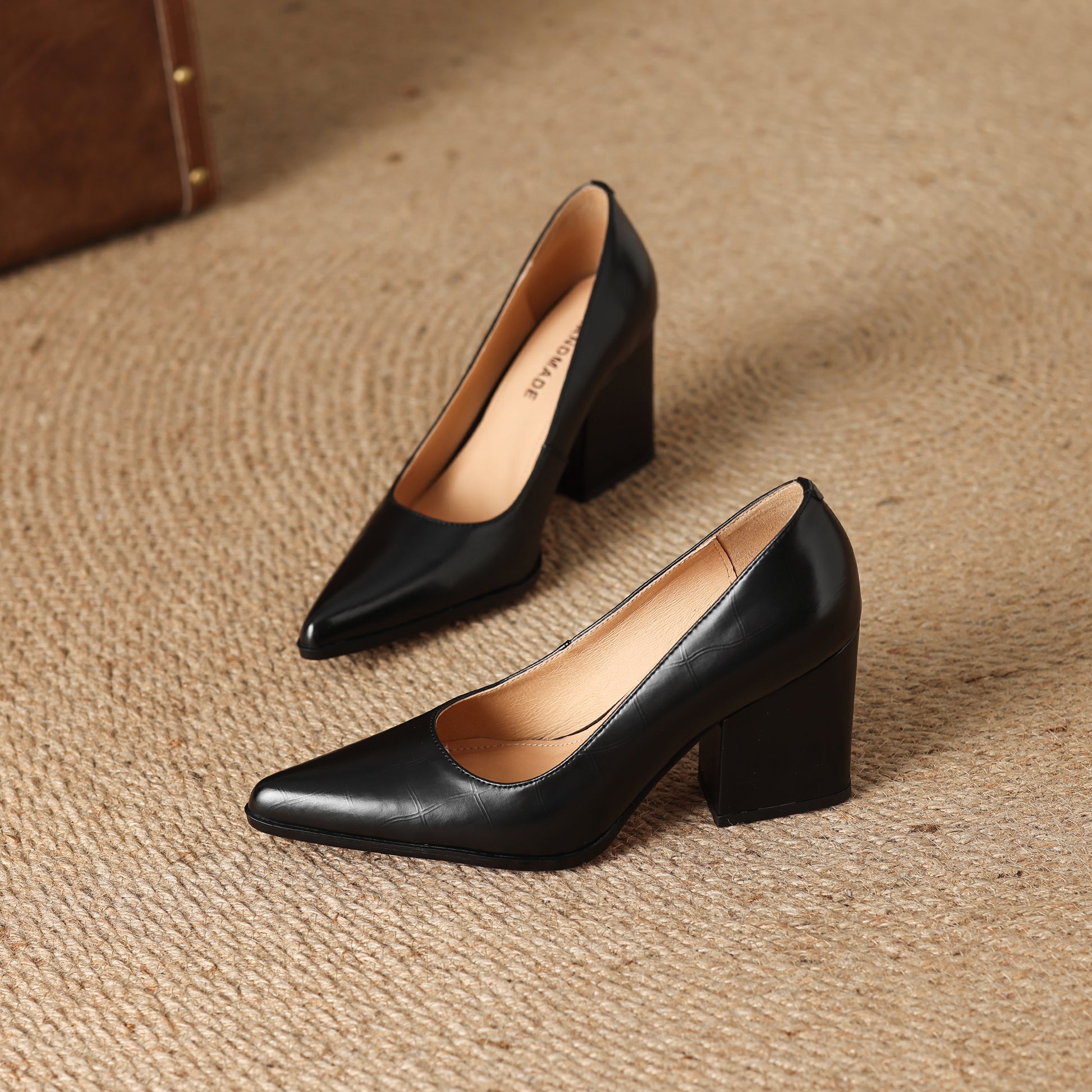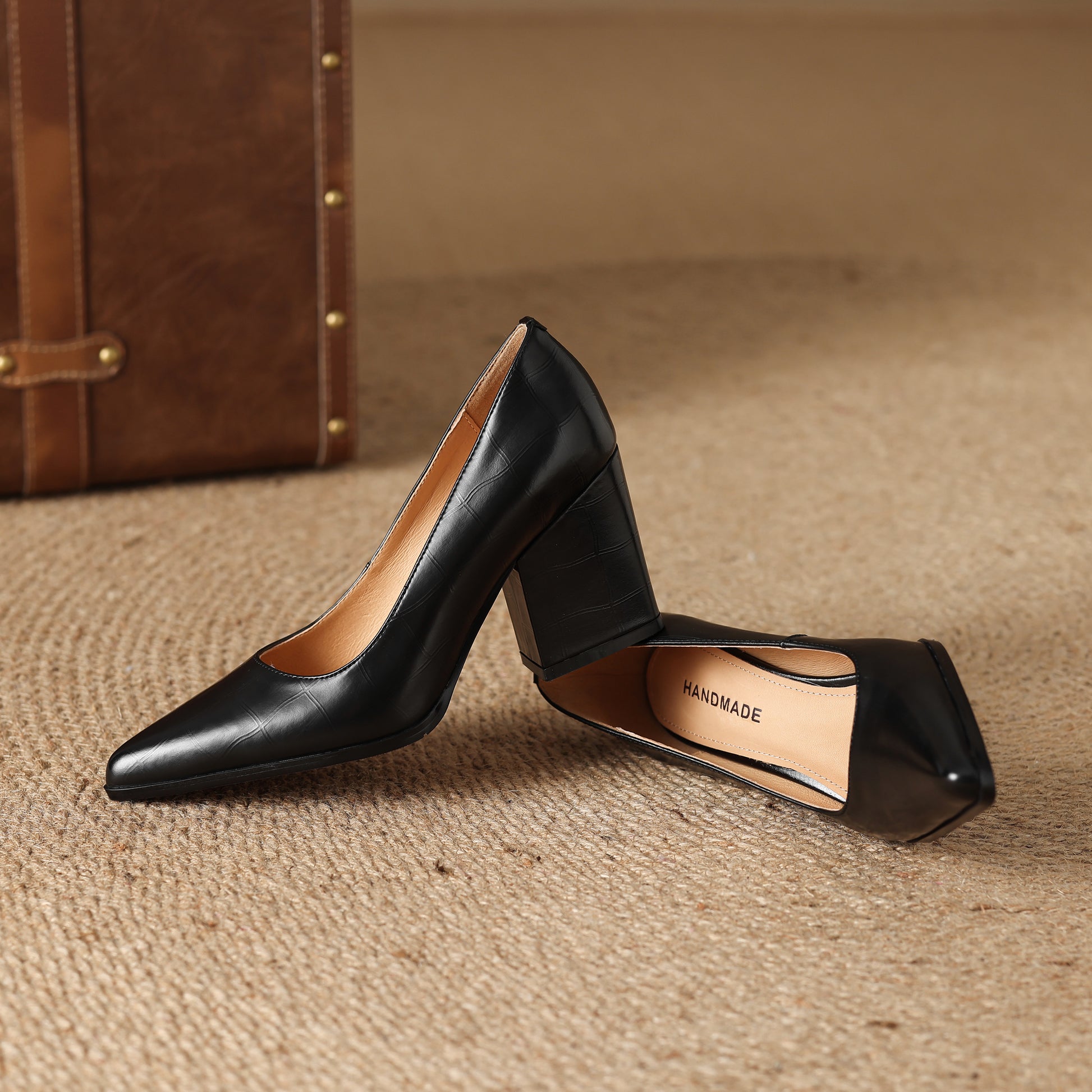 Elevate your style with these Classic Pointed-Toe Block Heels, crafted from premium genuine leather.