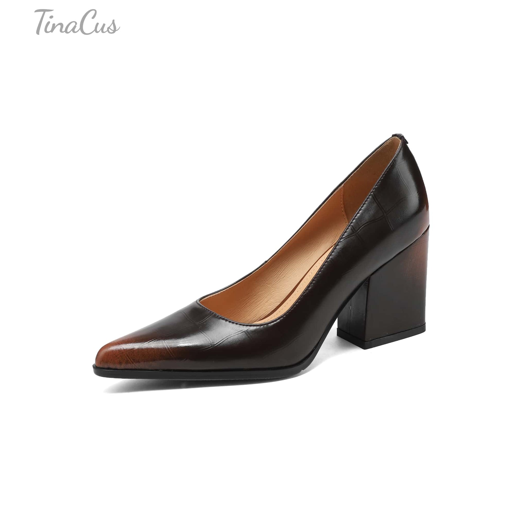 TinaCus Handmade Women's Genuine Leather Pointed Toe Office Ladies Classic Pumps Shoes