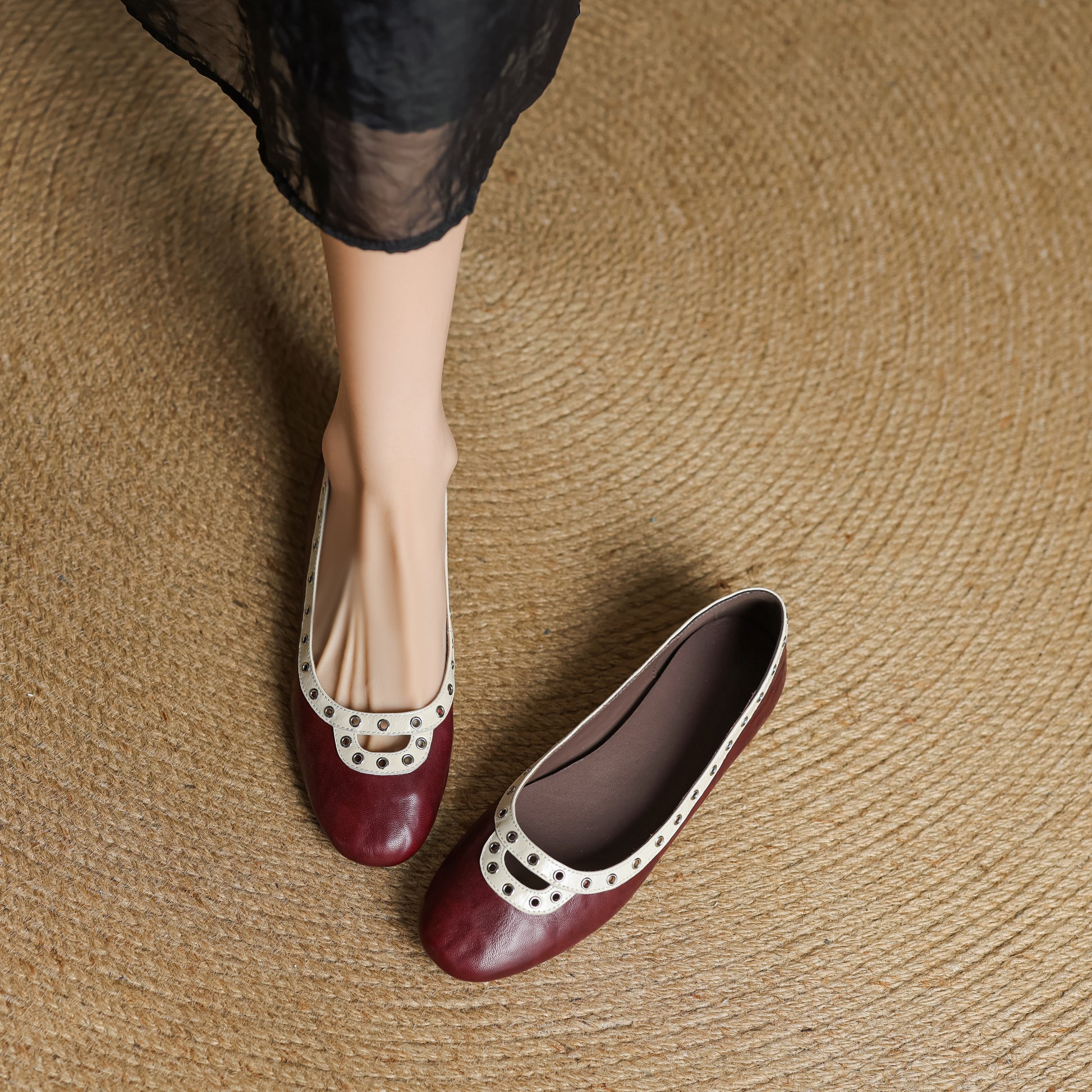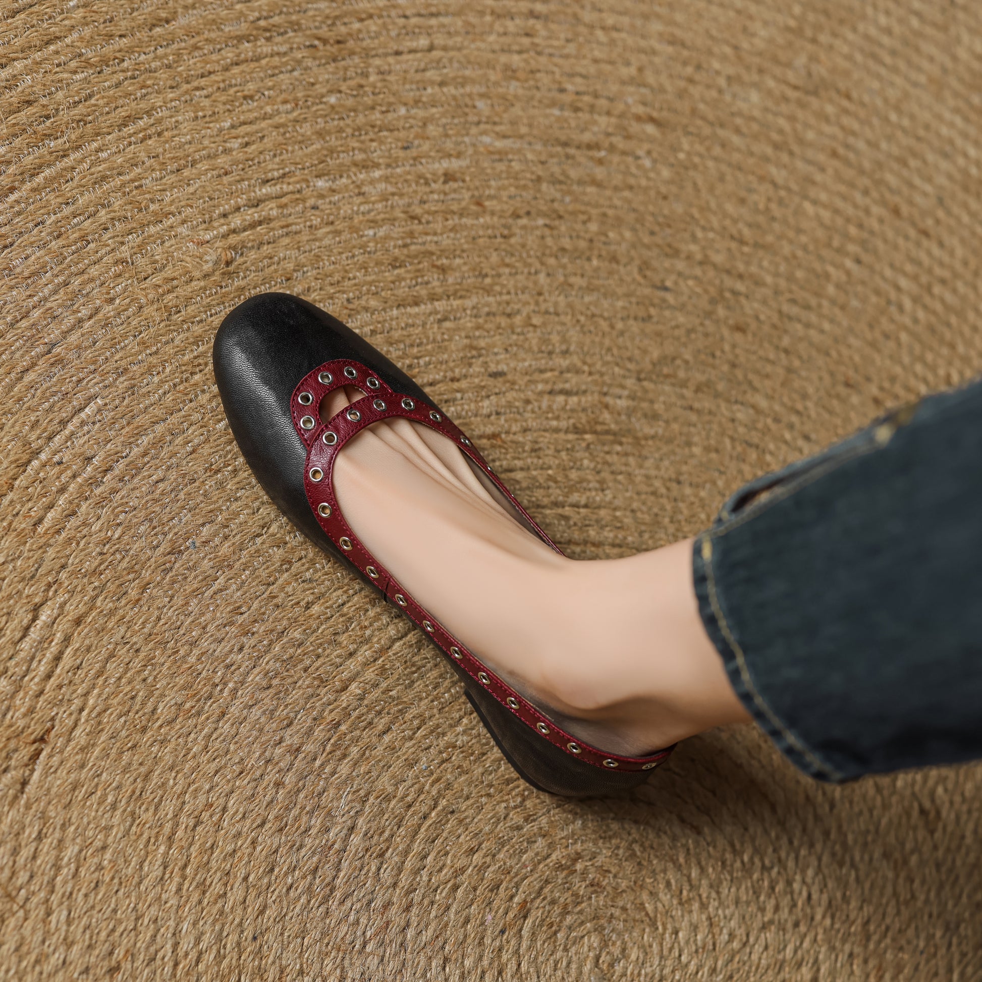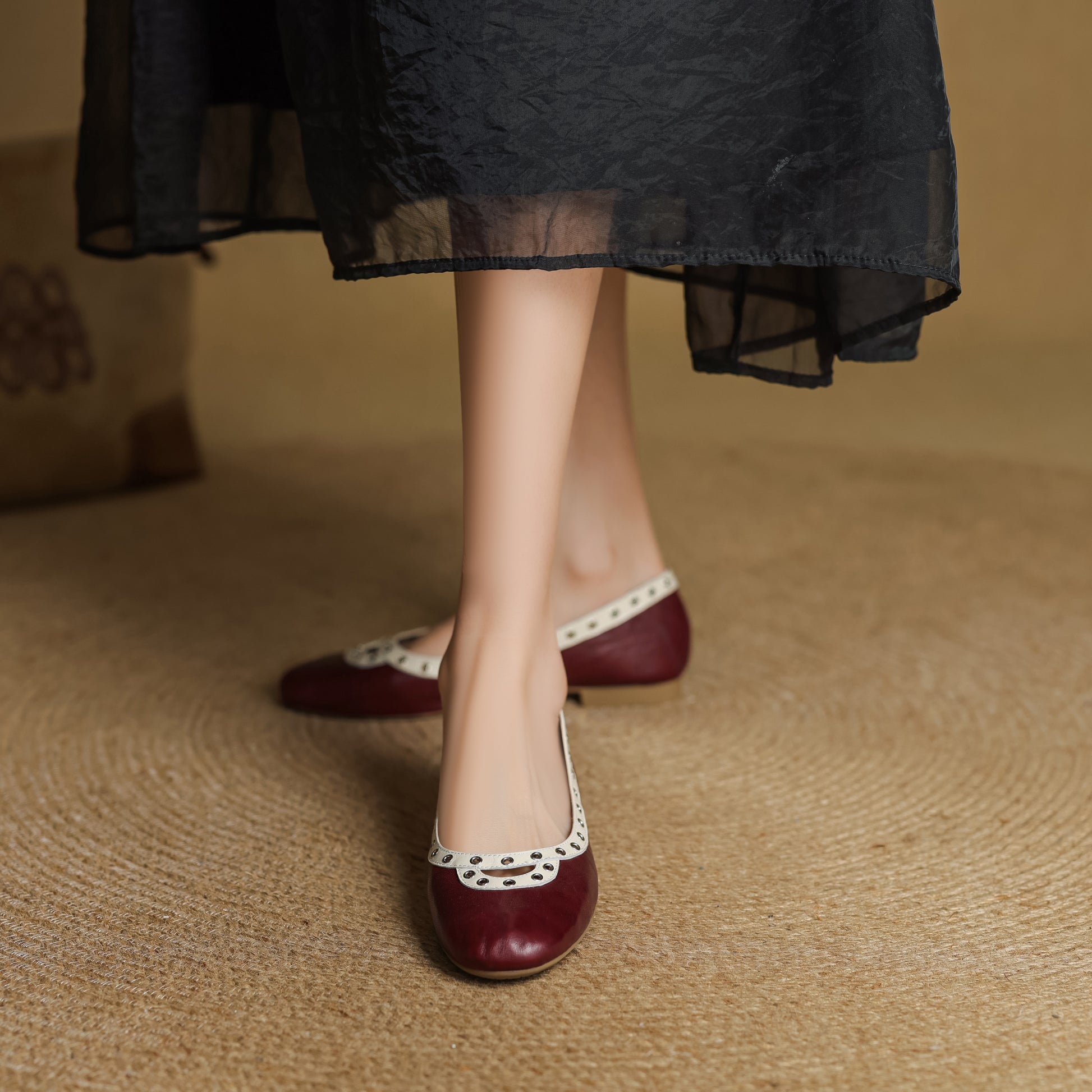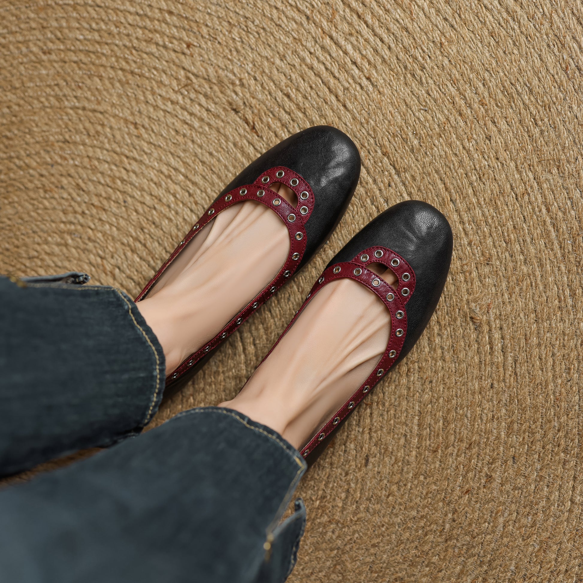 These round toe ballet flats feature premium materials and hollow-out details for a fashion look.