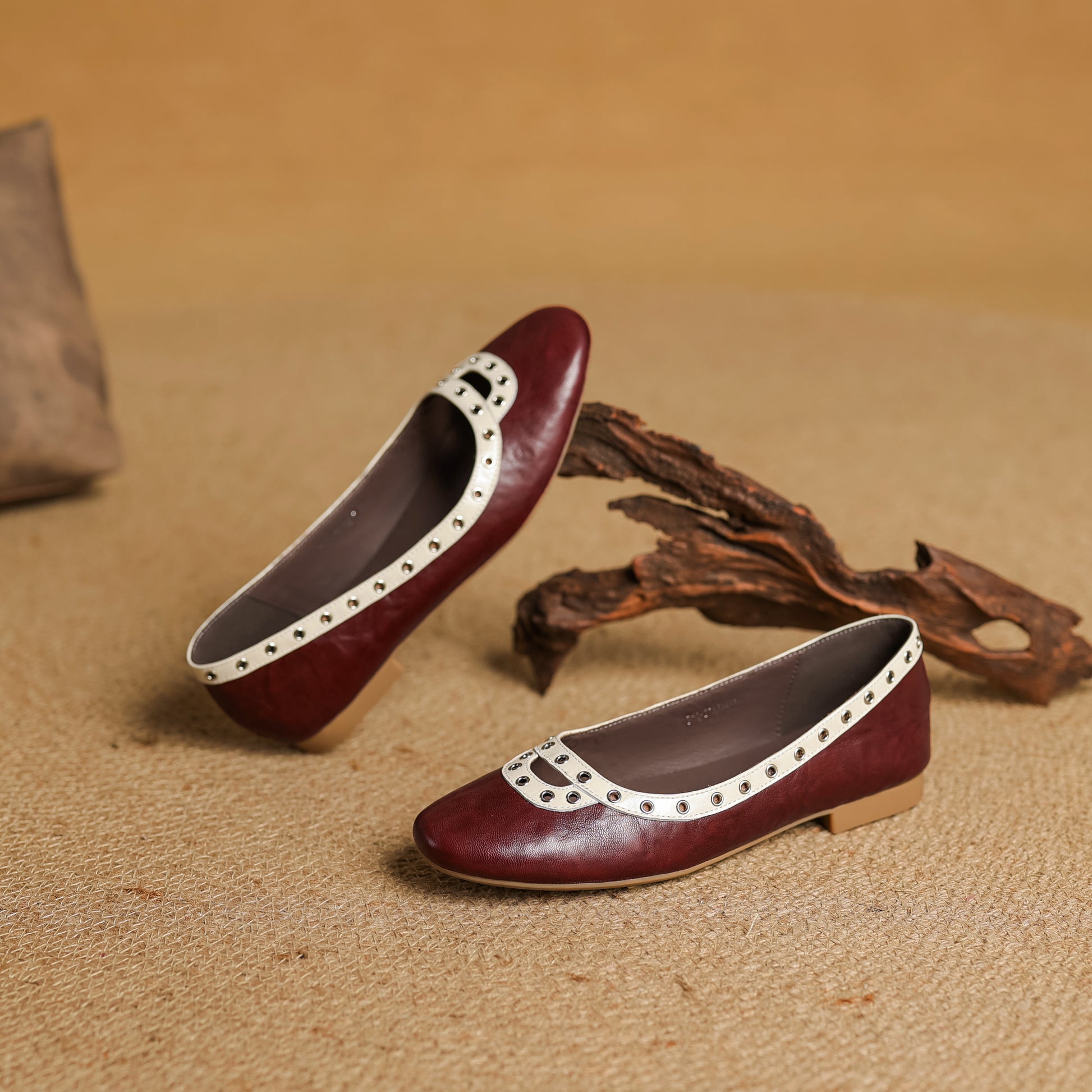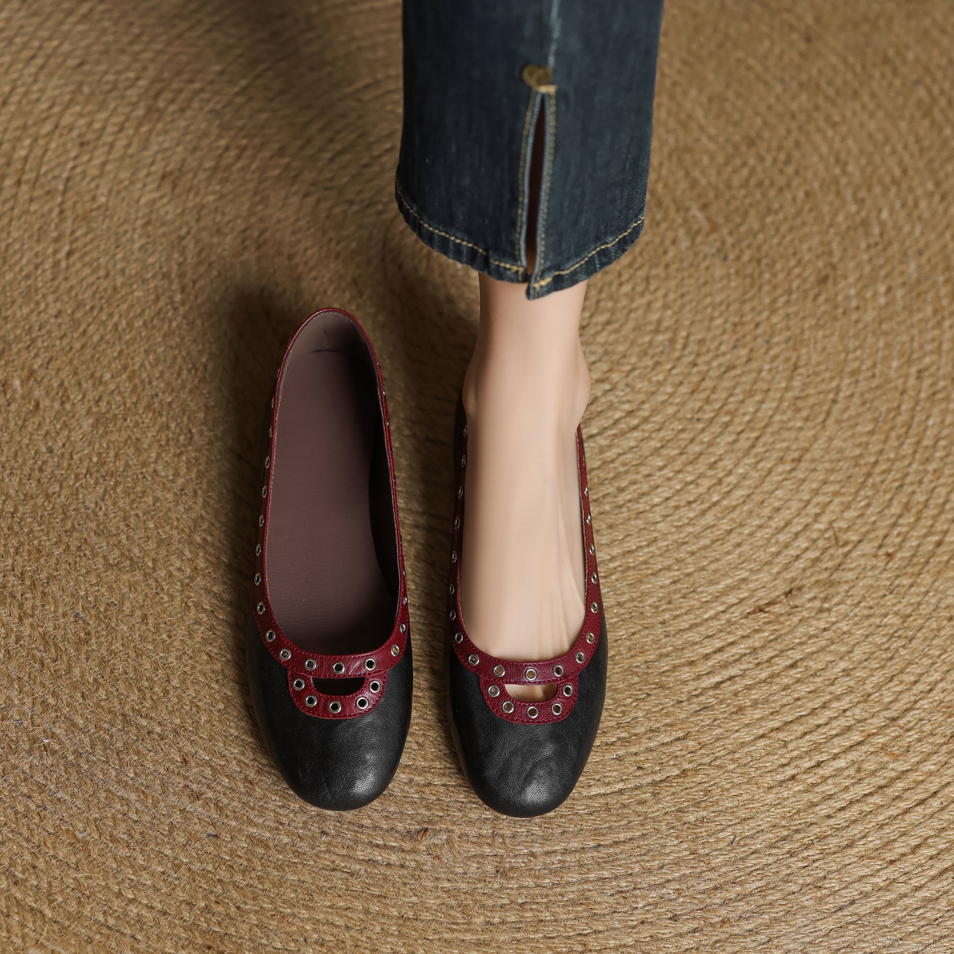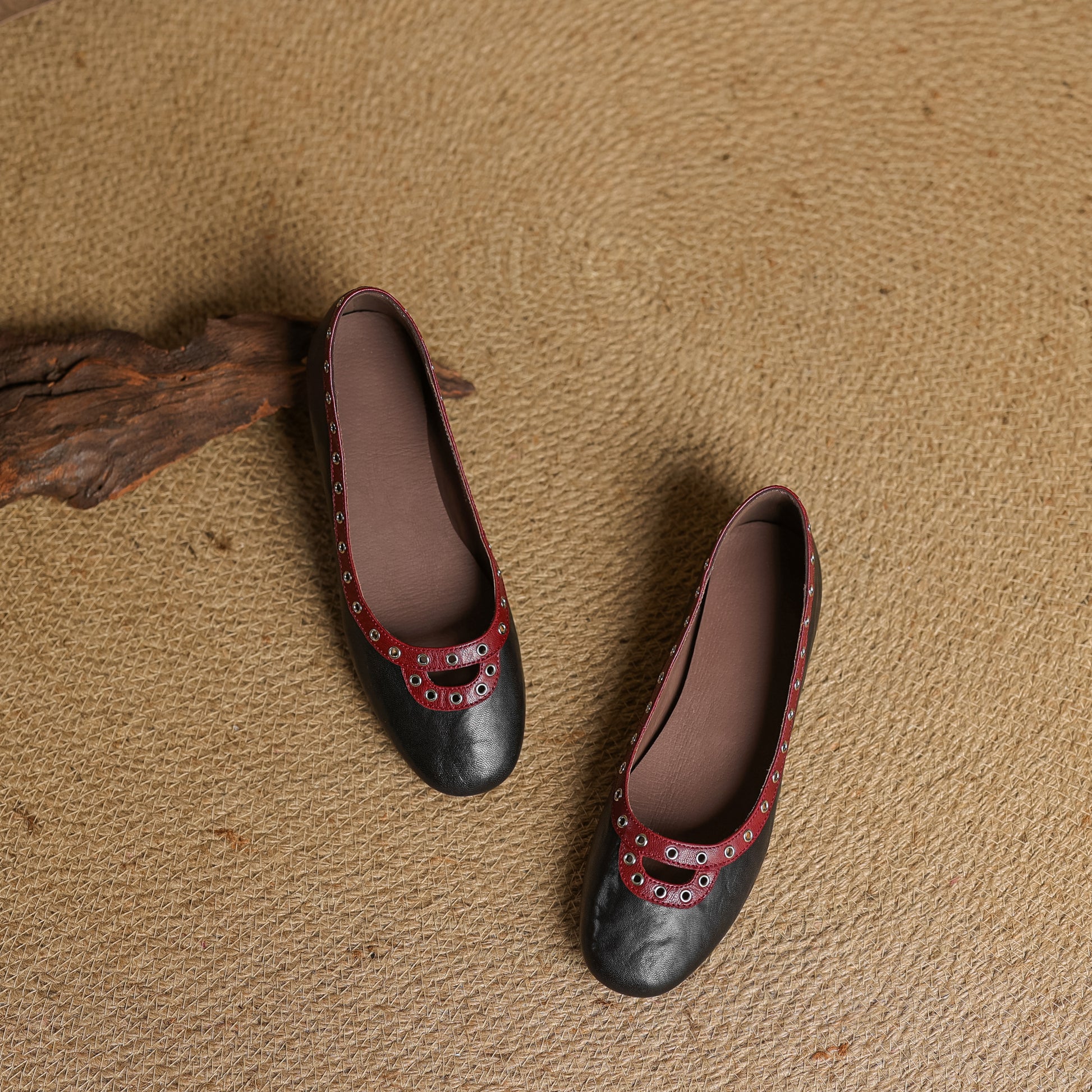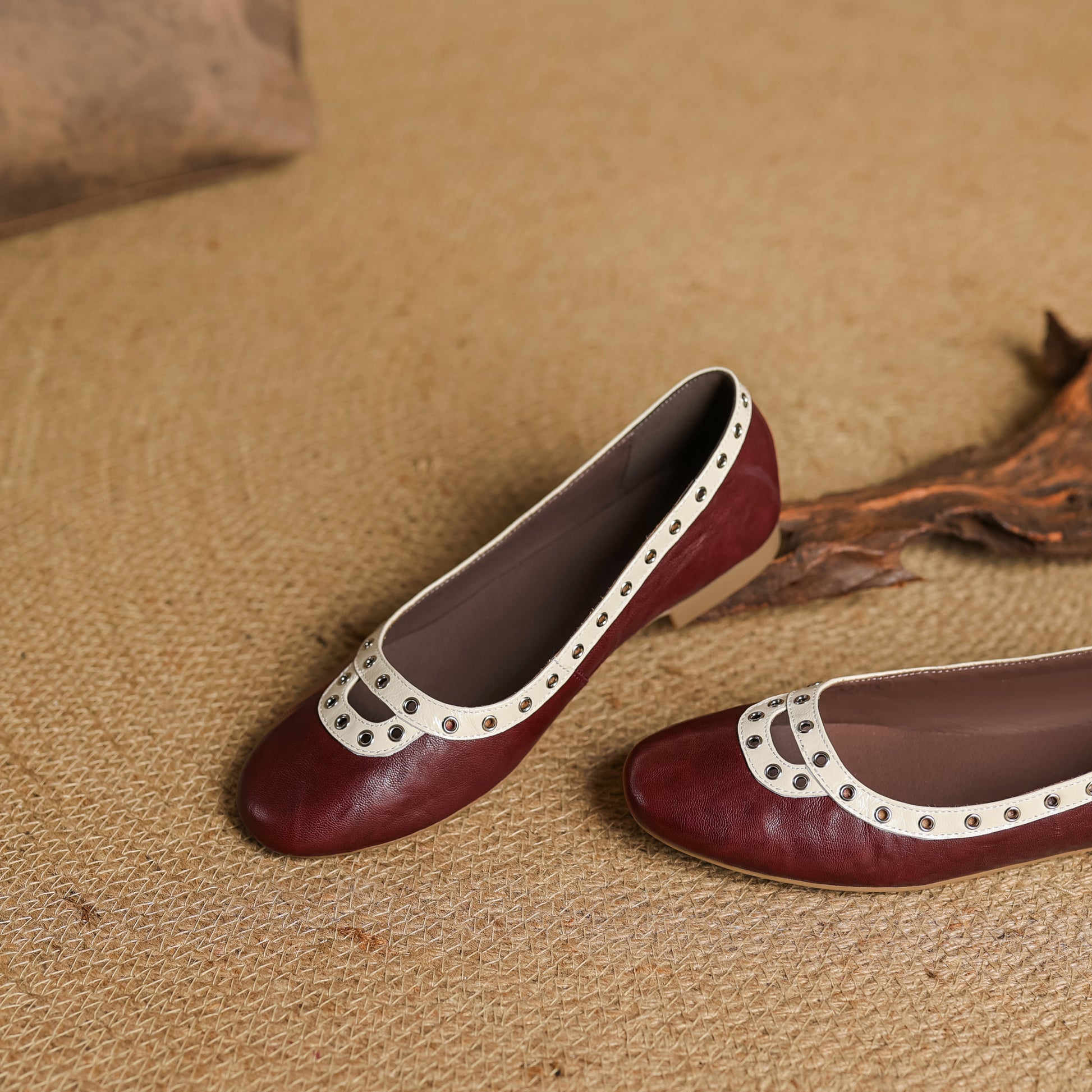 These round toe ballet flats feature premium materials and hollow-out details for a fashion look.