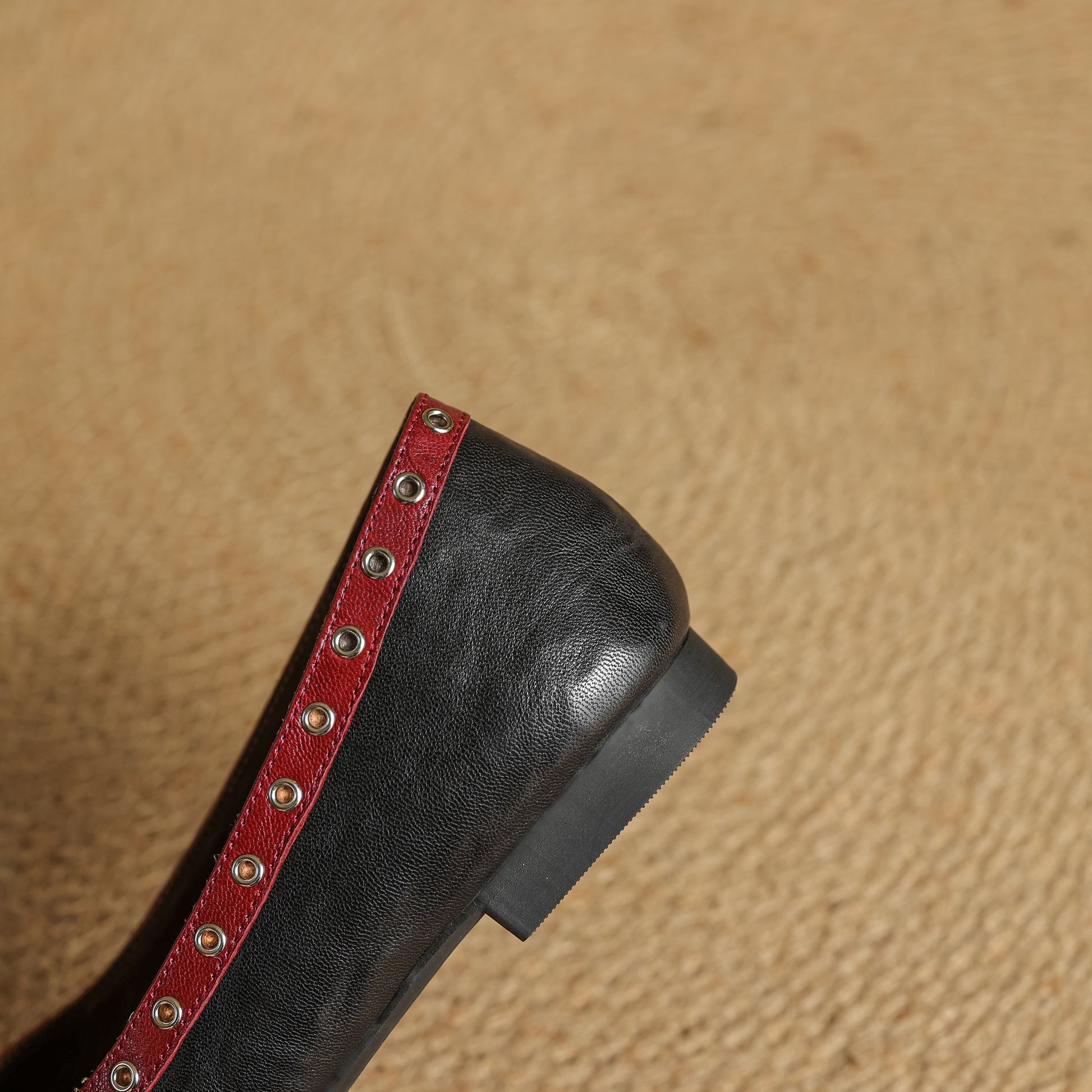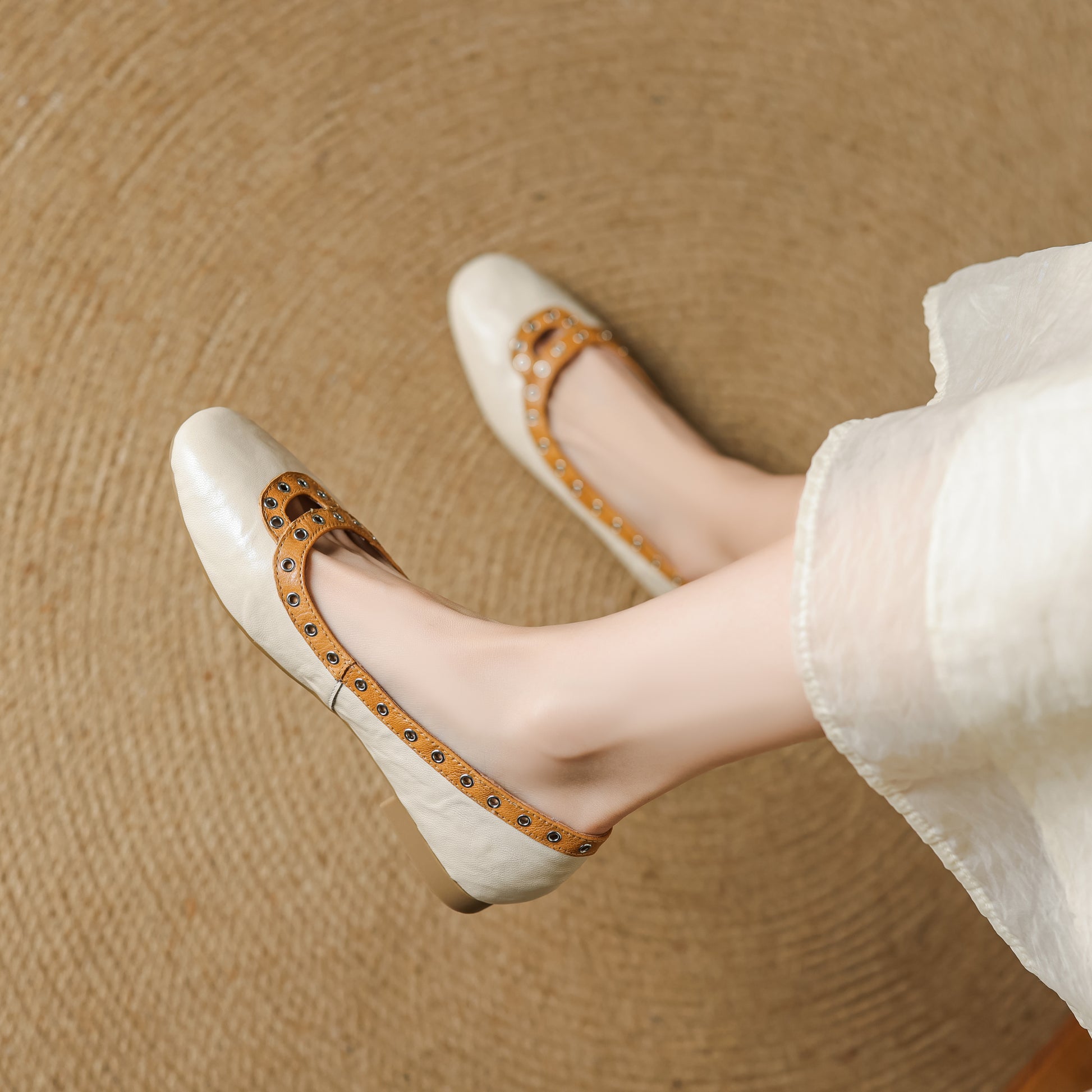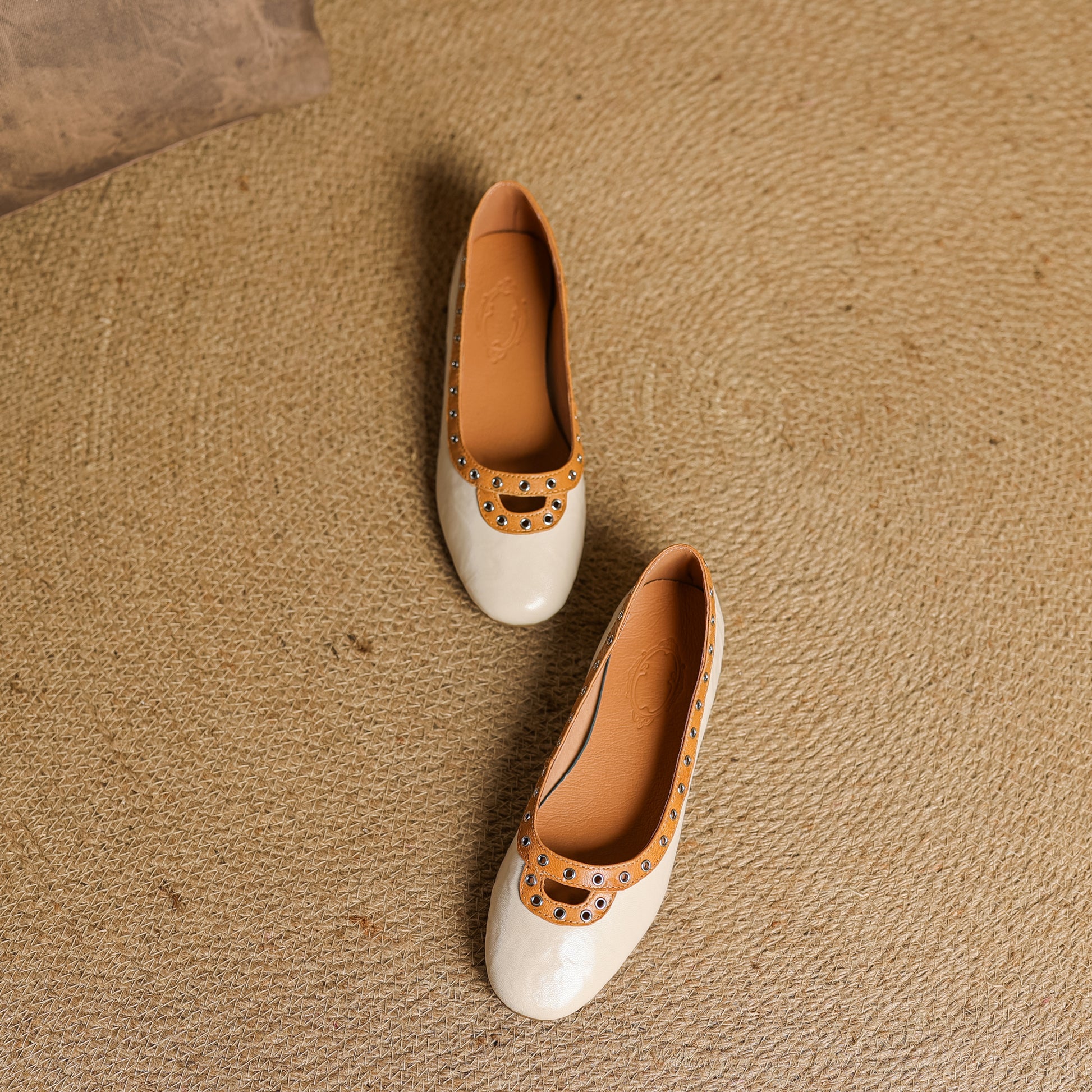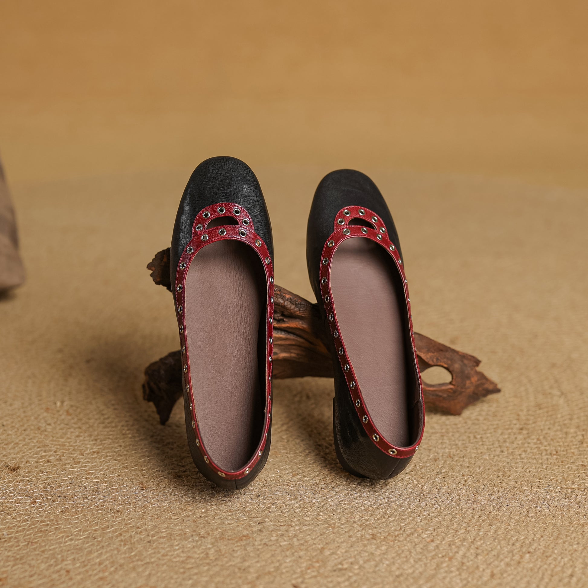 These round toe ballet flats feature premium materials and hollow-out details for a fashion look.