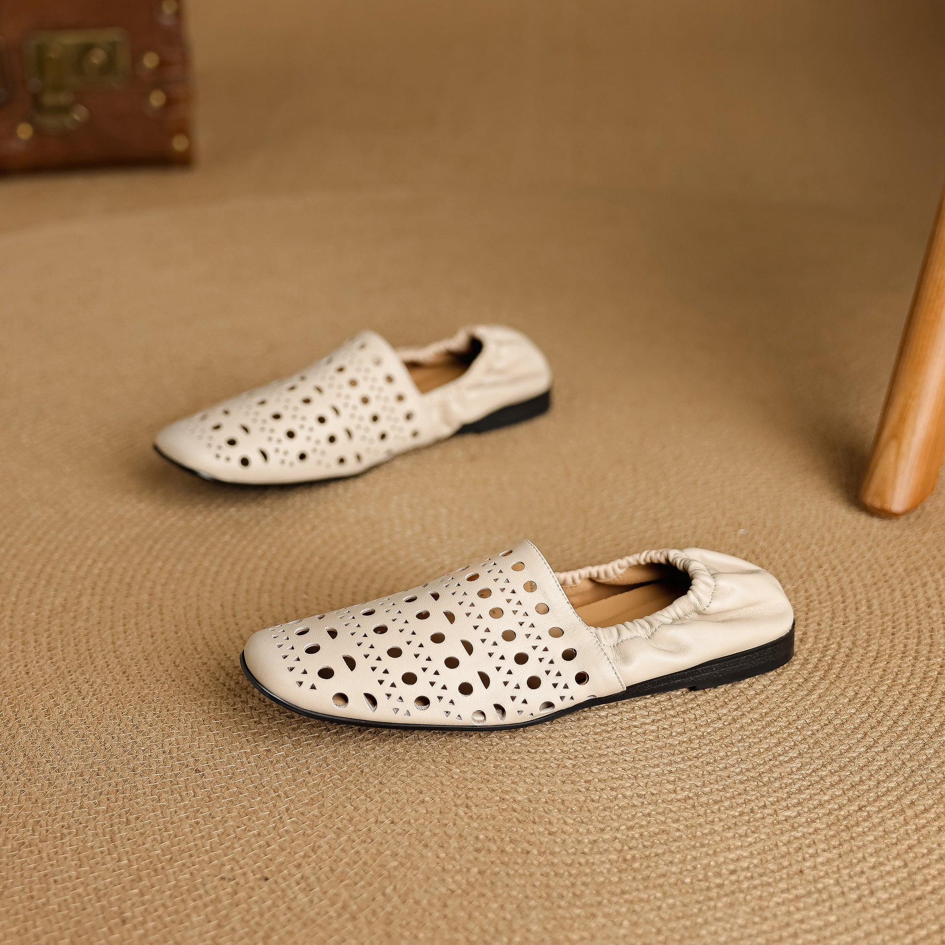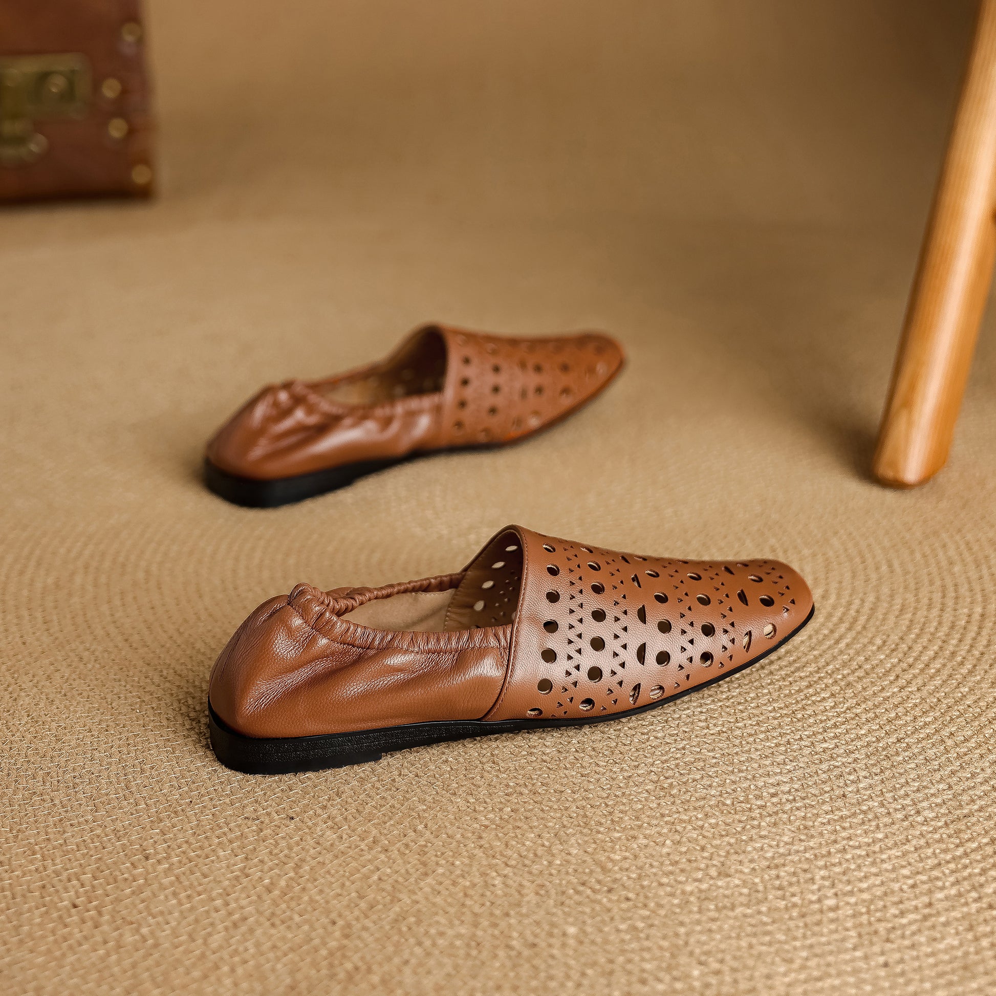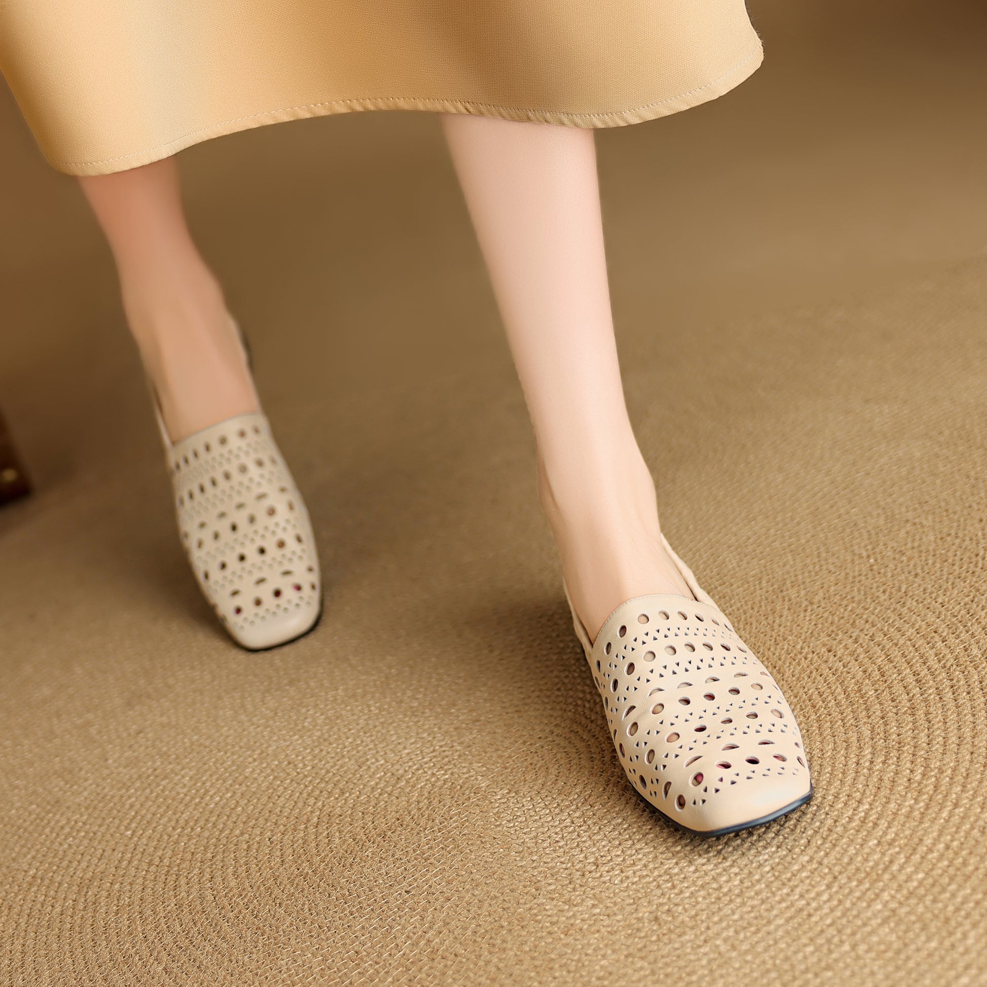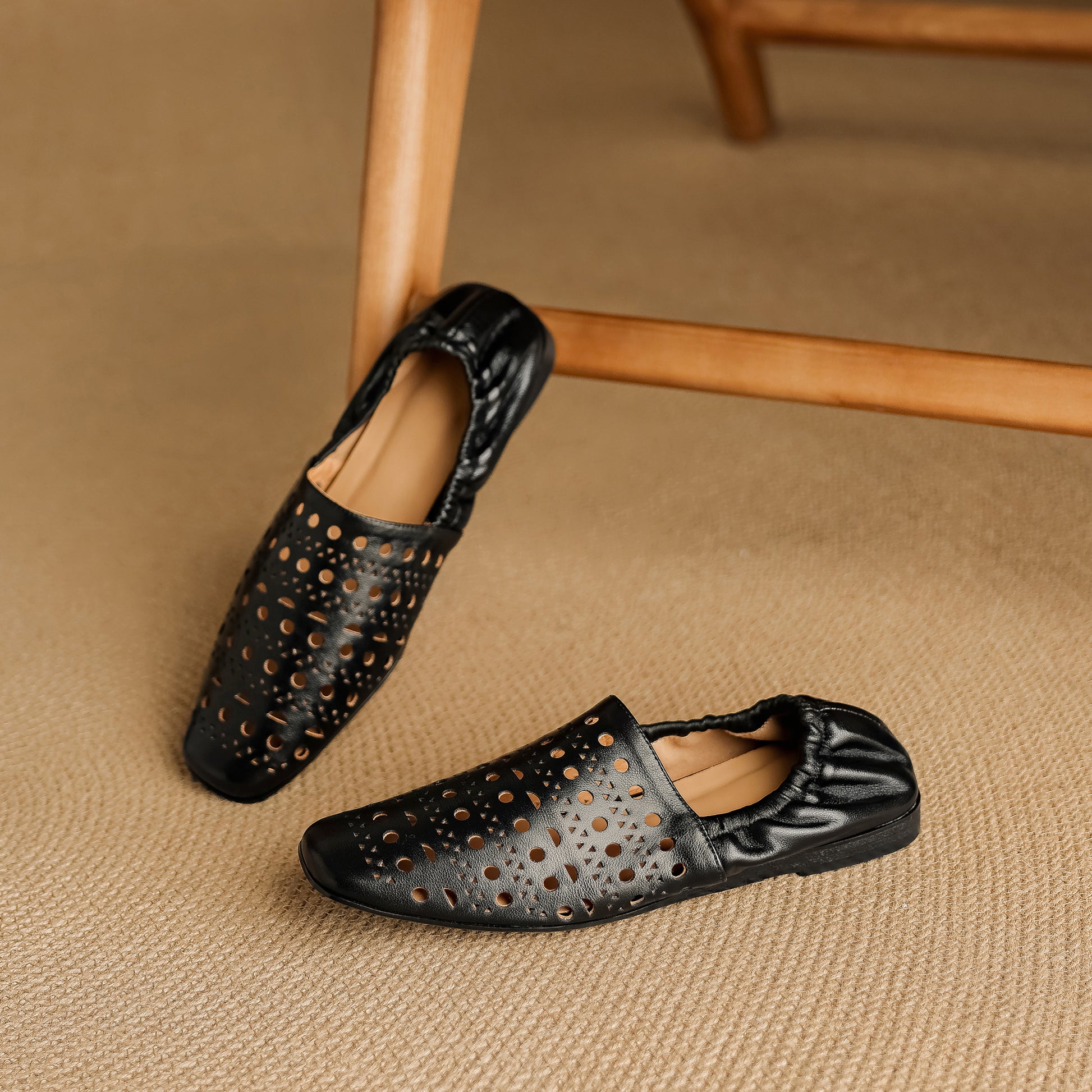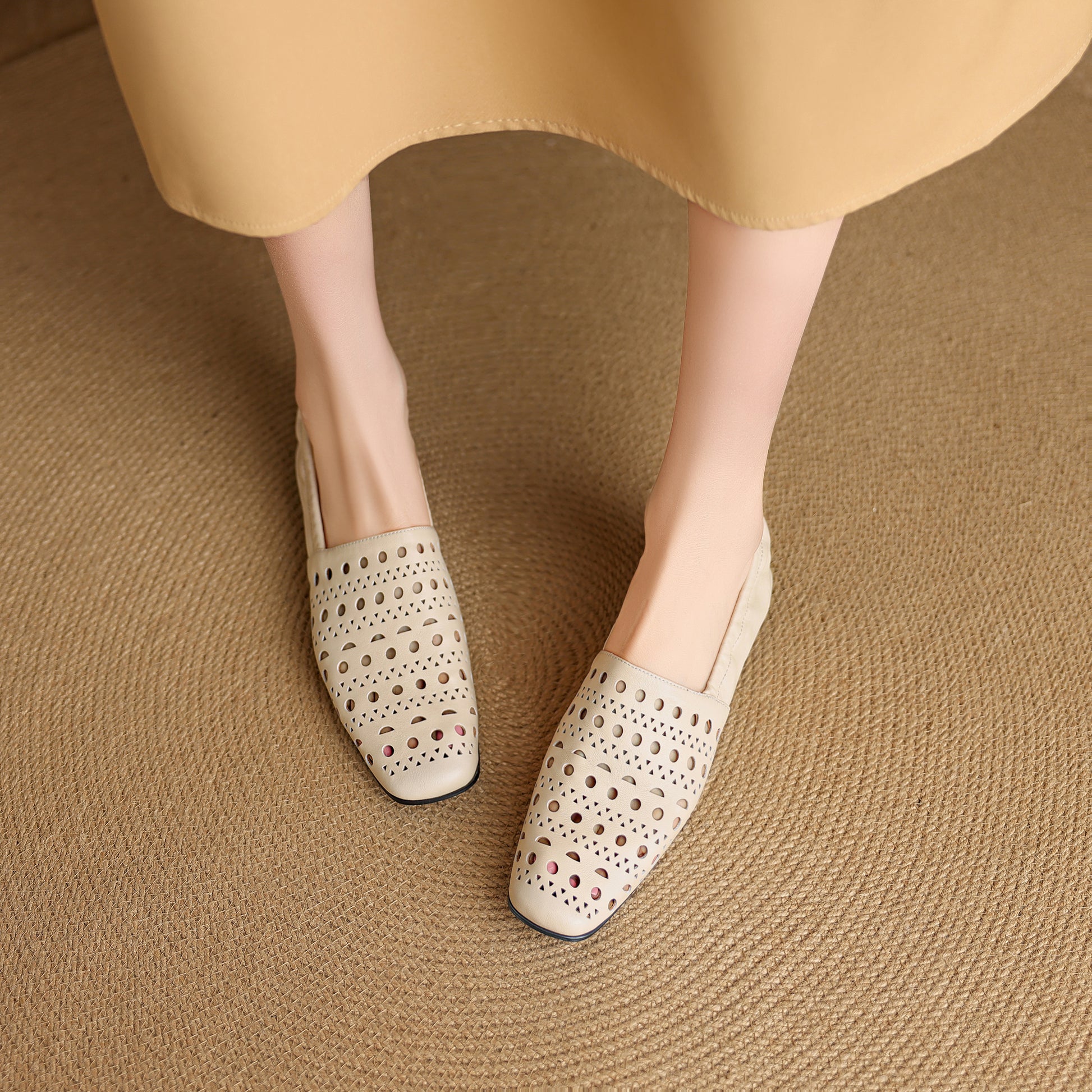 TinaCus Handmade Women's Genuine Leather Soft Square Toe Hollow-Out Slip on Casual Shoes Loafer Flats