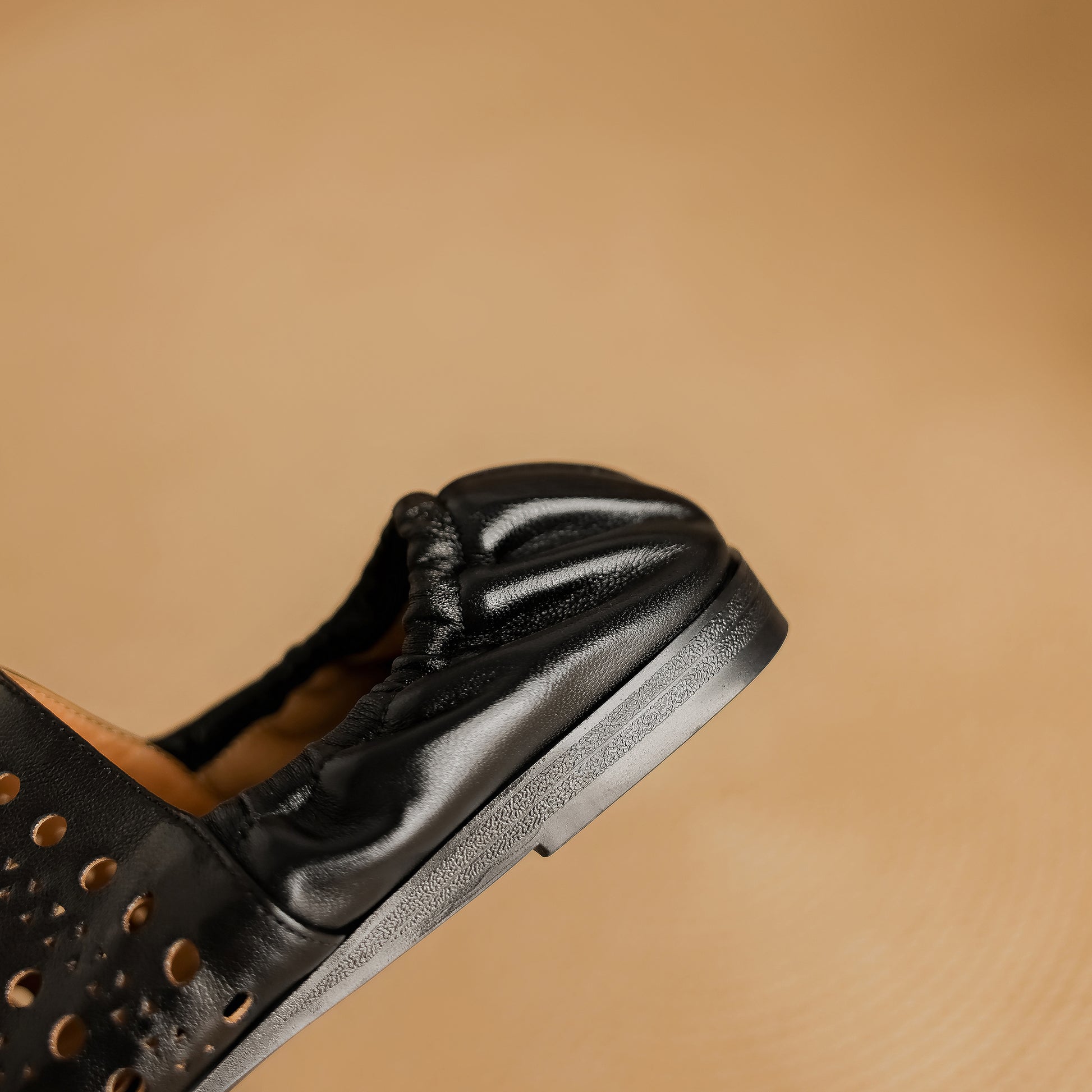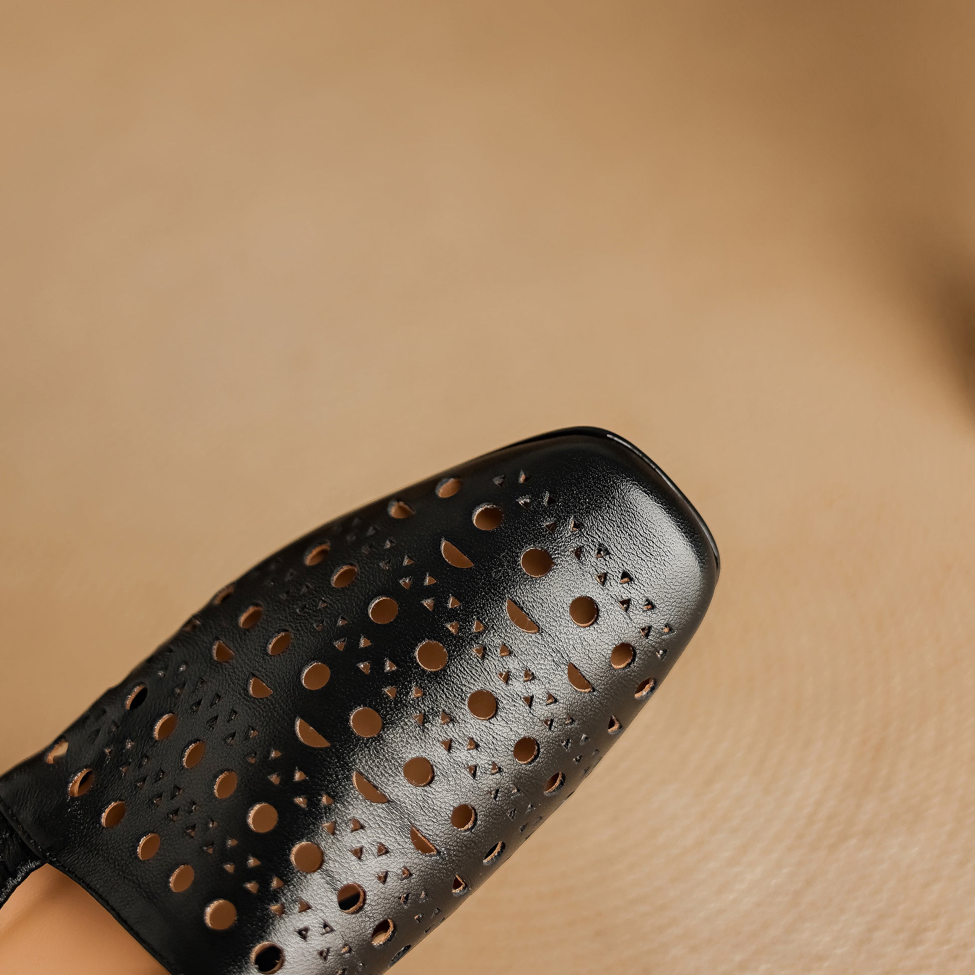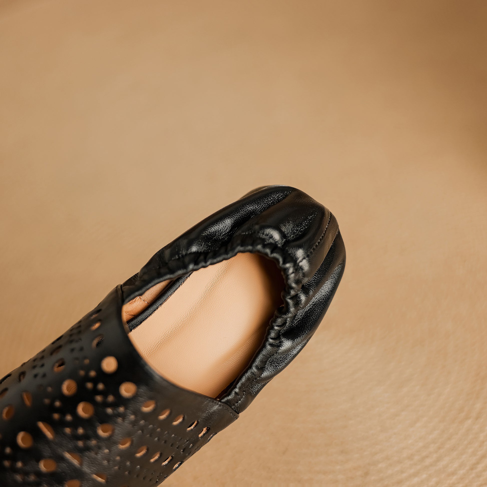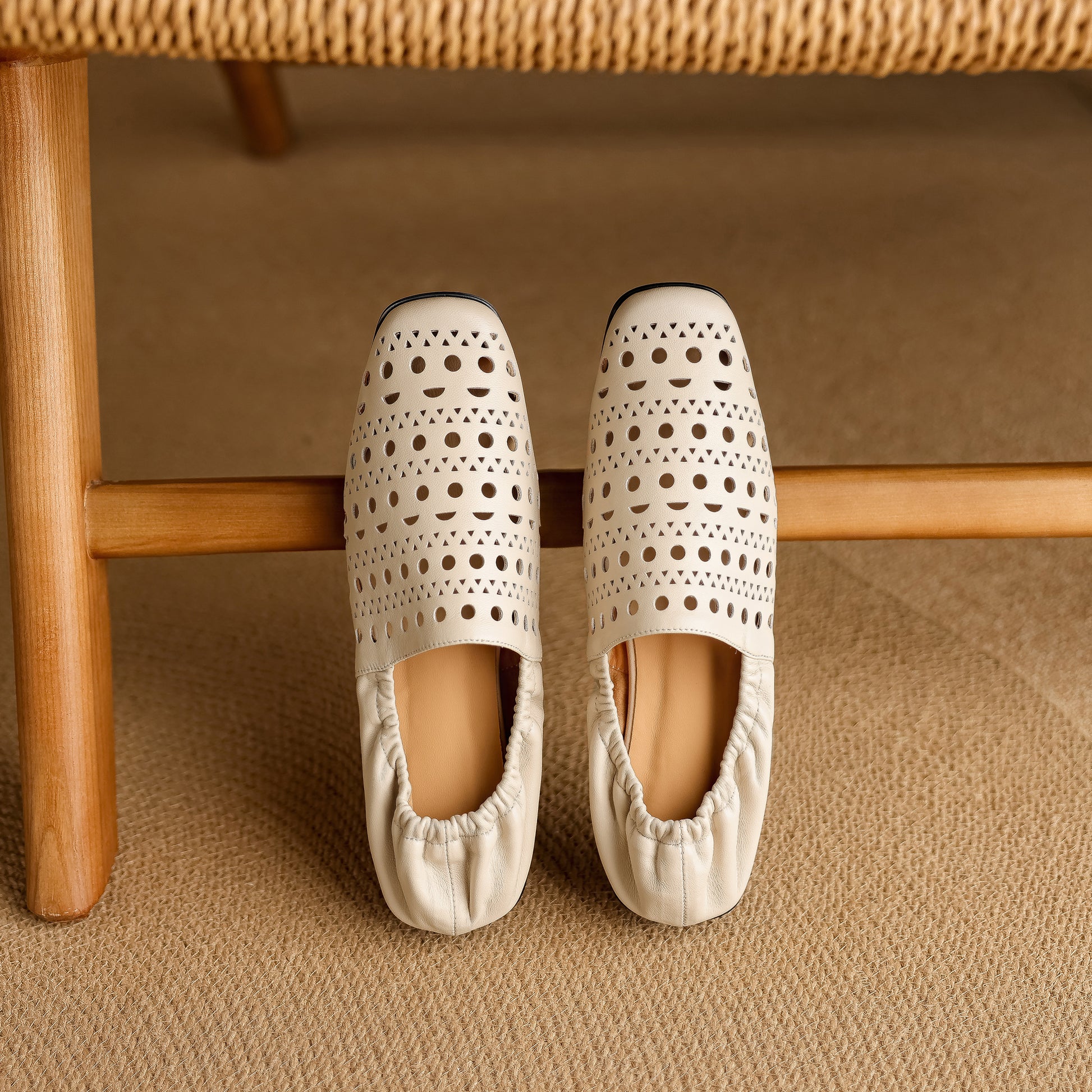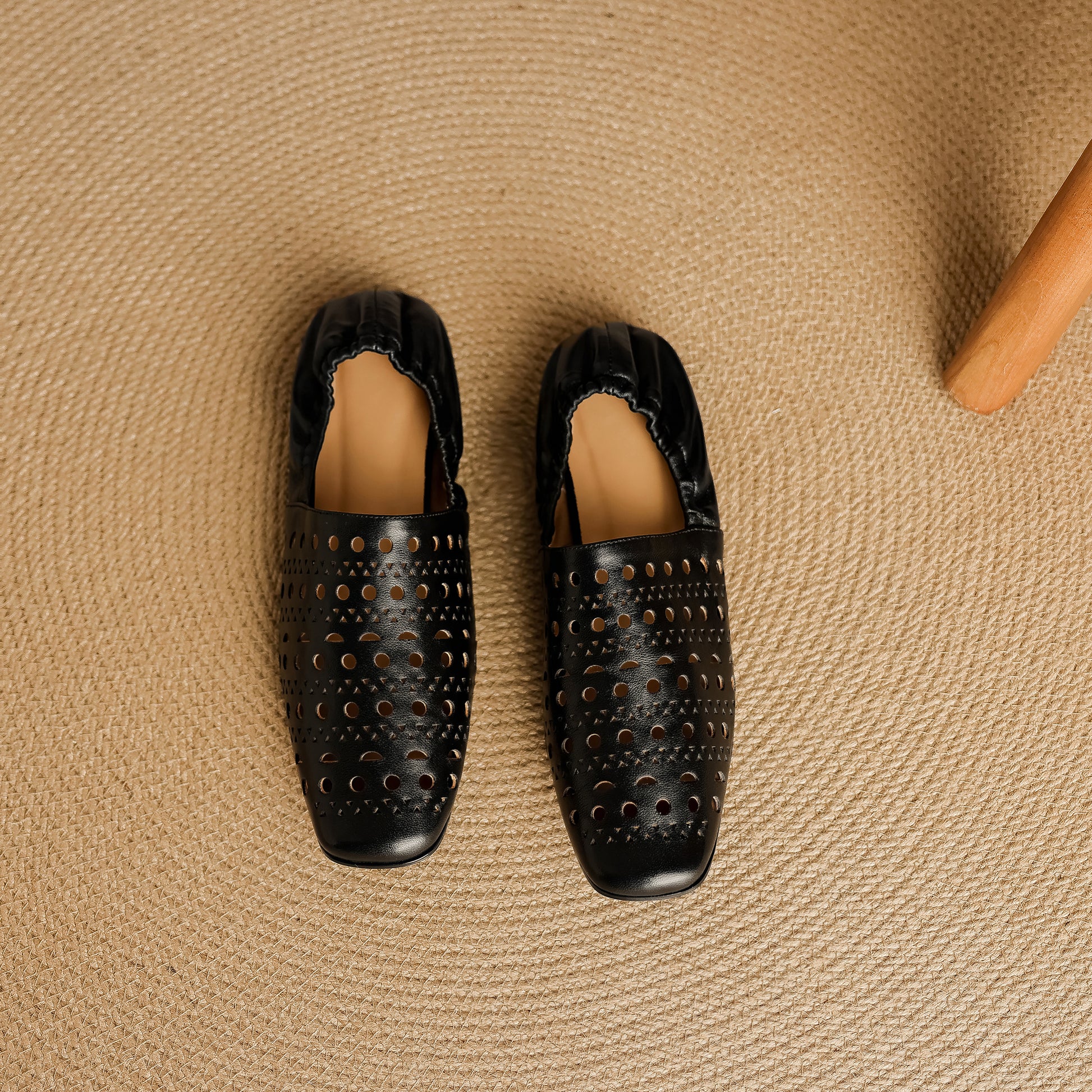 TinaCus Handmade Women's Genuine Leather Soft Square Toe Hollow-Out Slip on Casual Shoes Loafer Flats