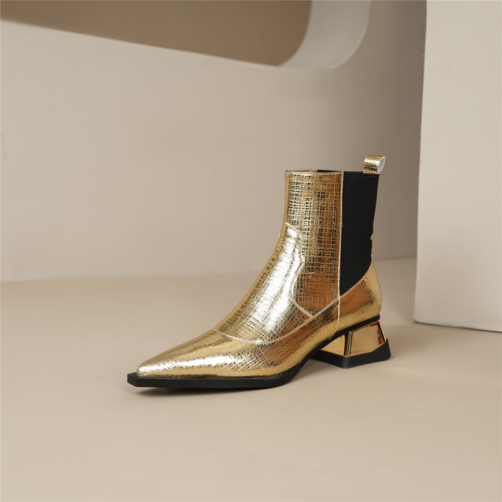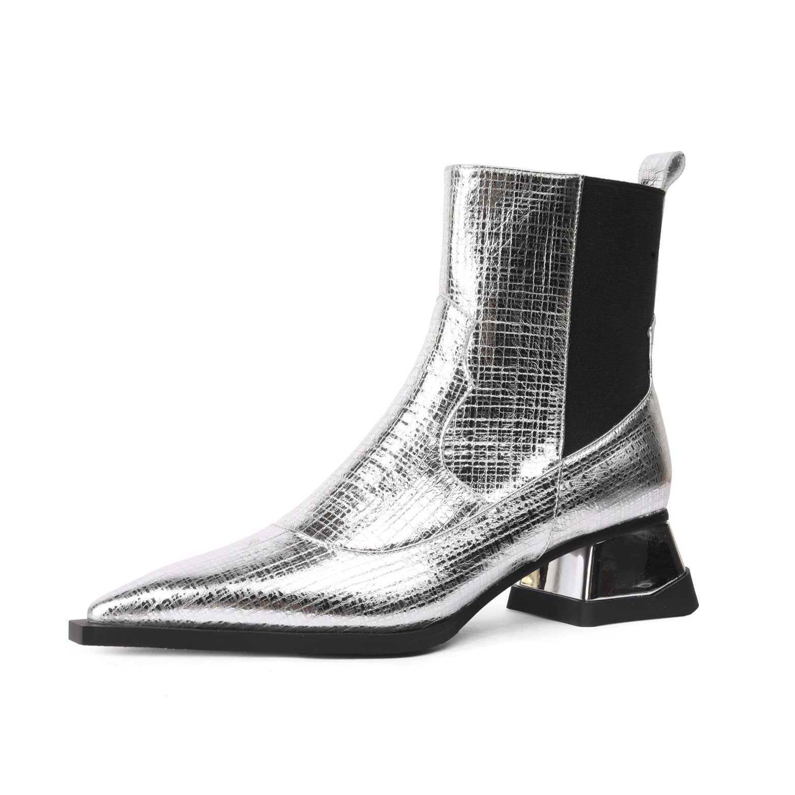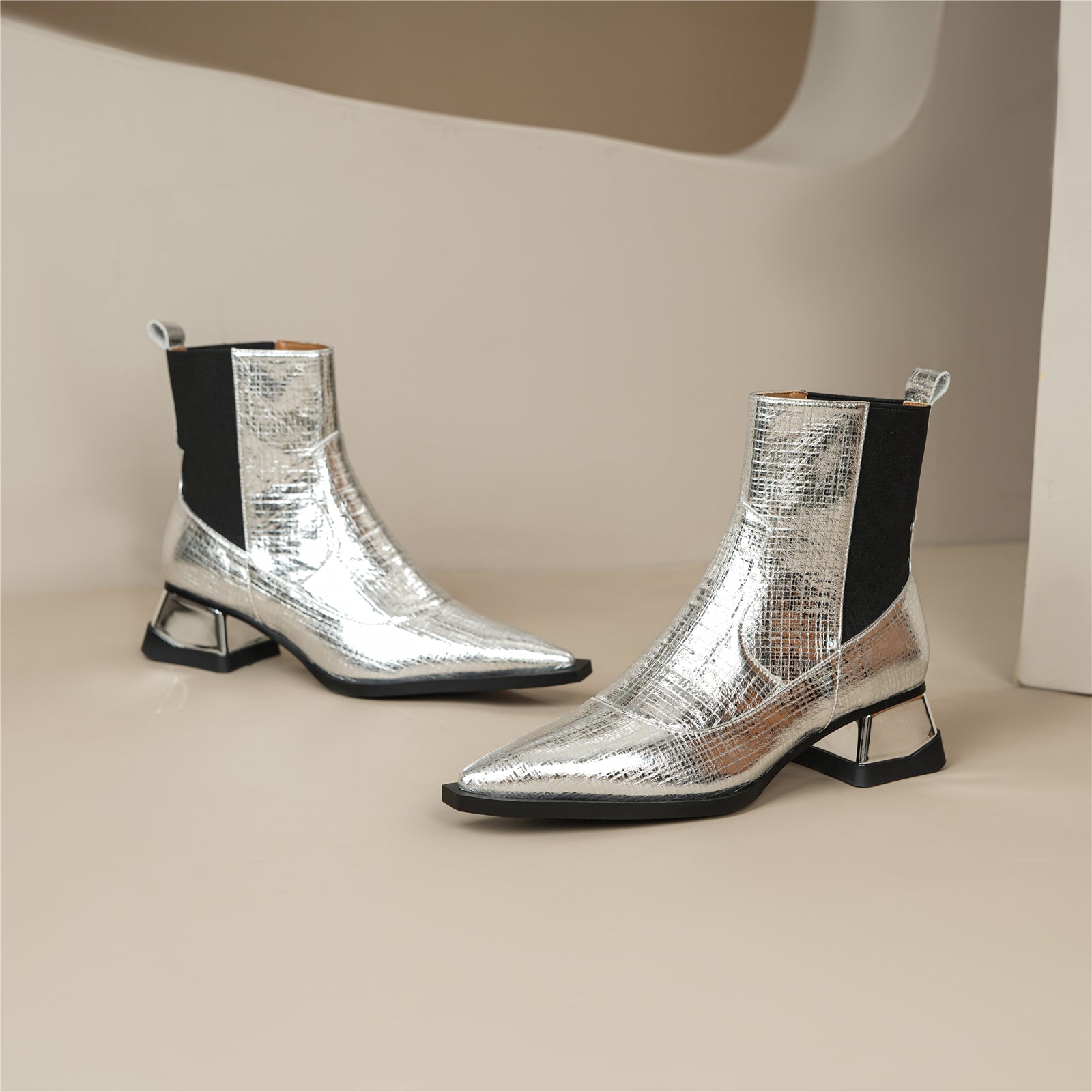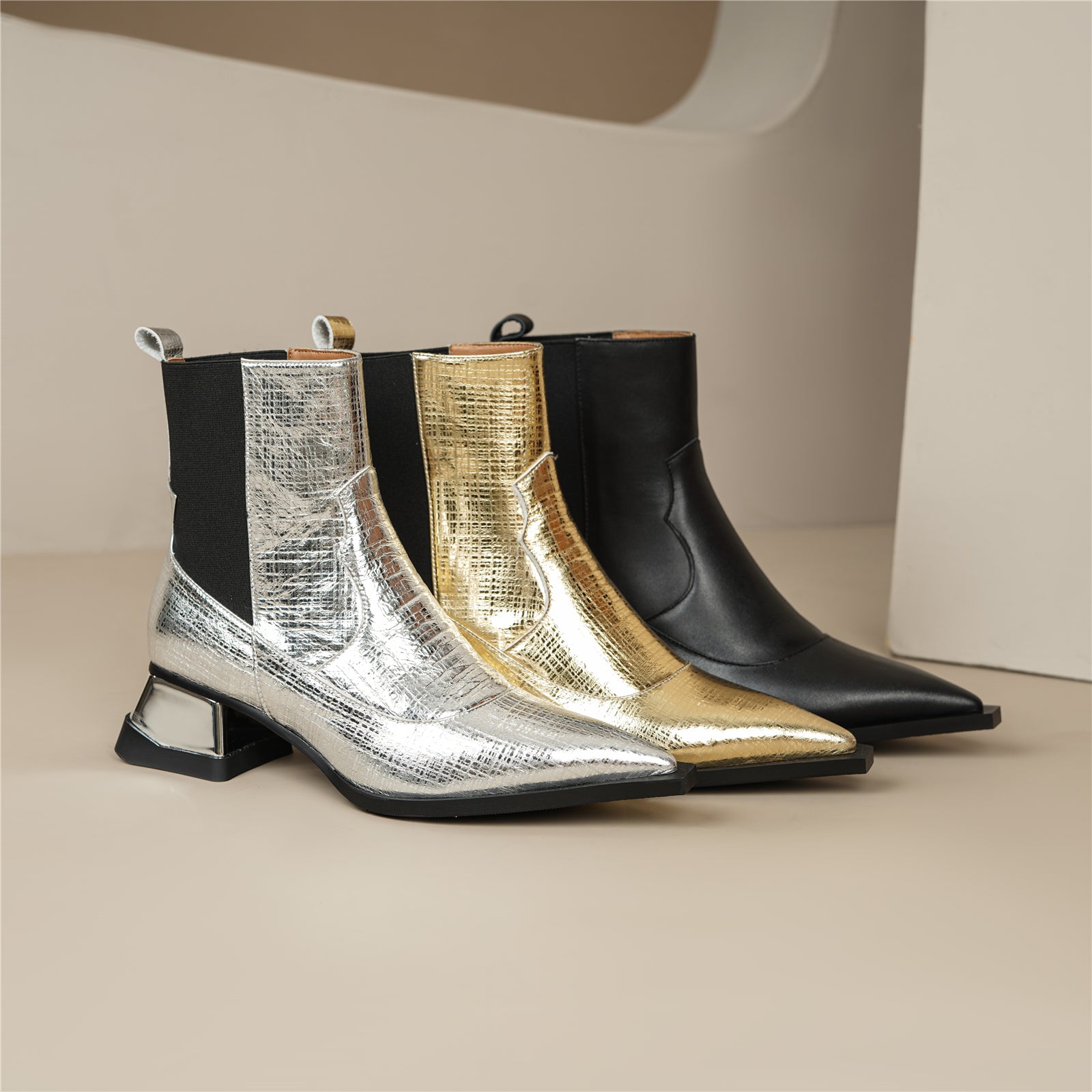 Ankle boots are designed with pointed toe, genuine leather, zip and spool heel.