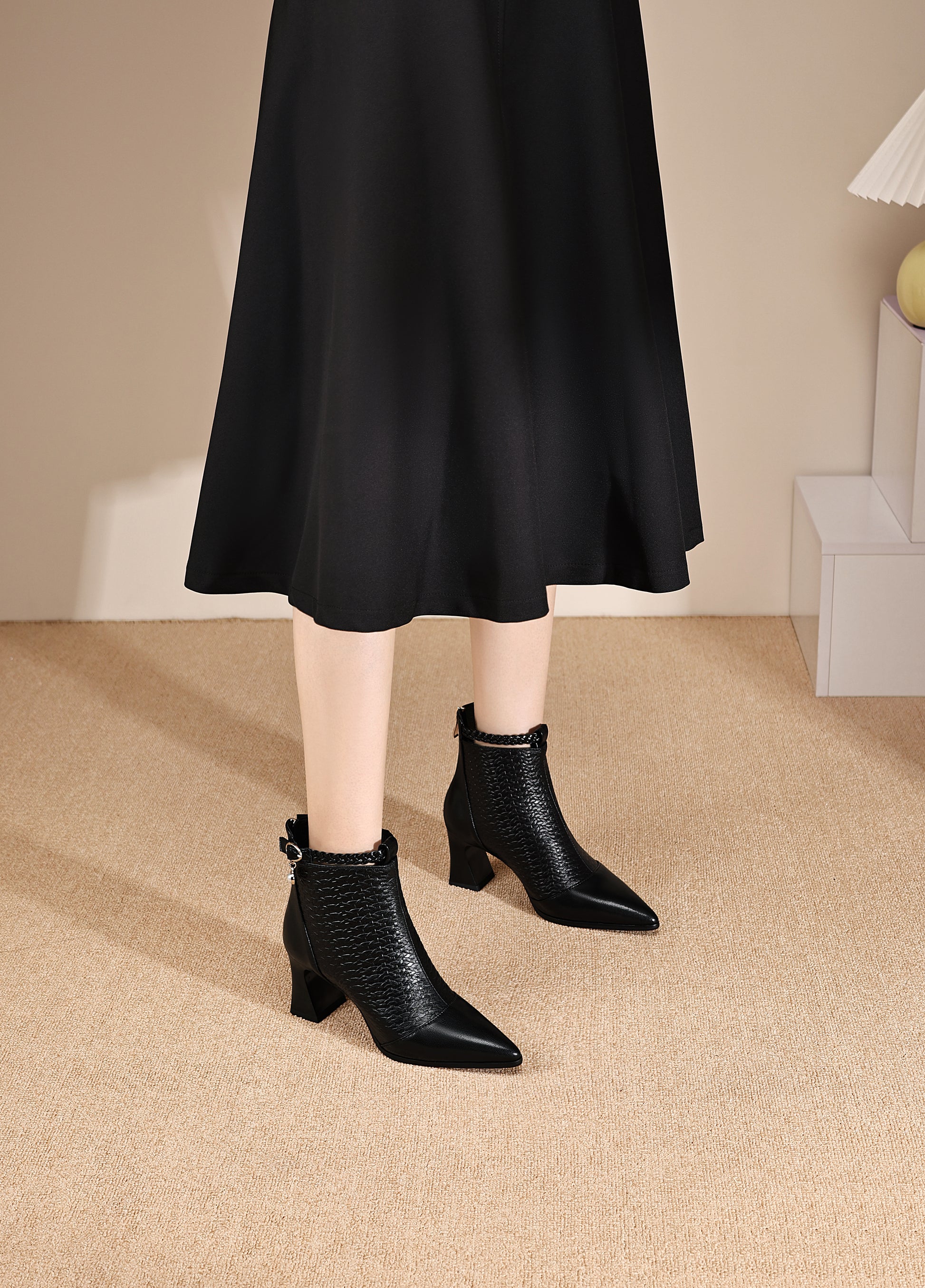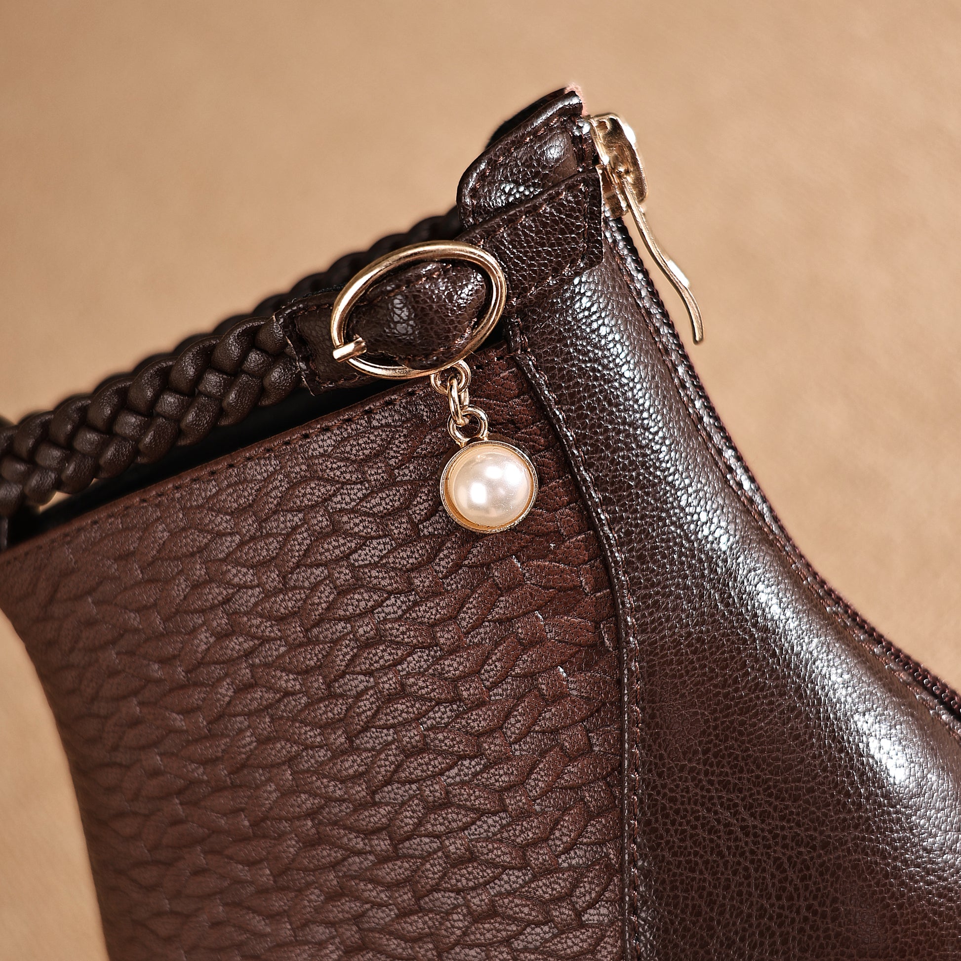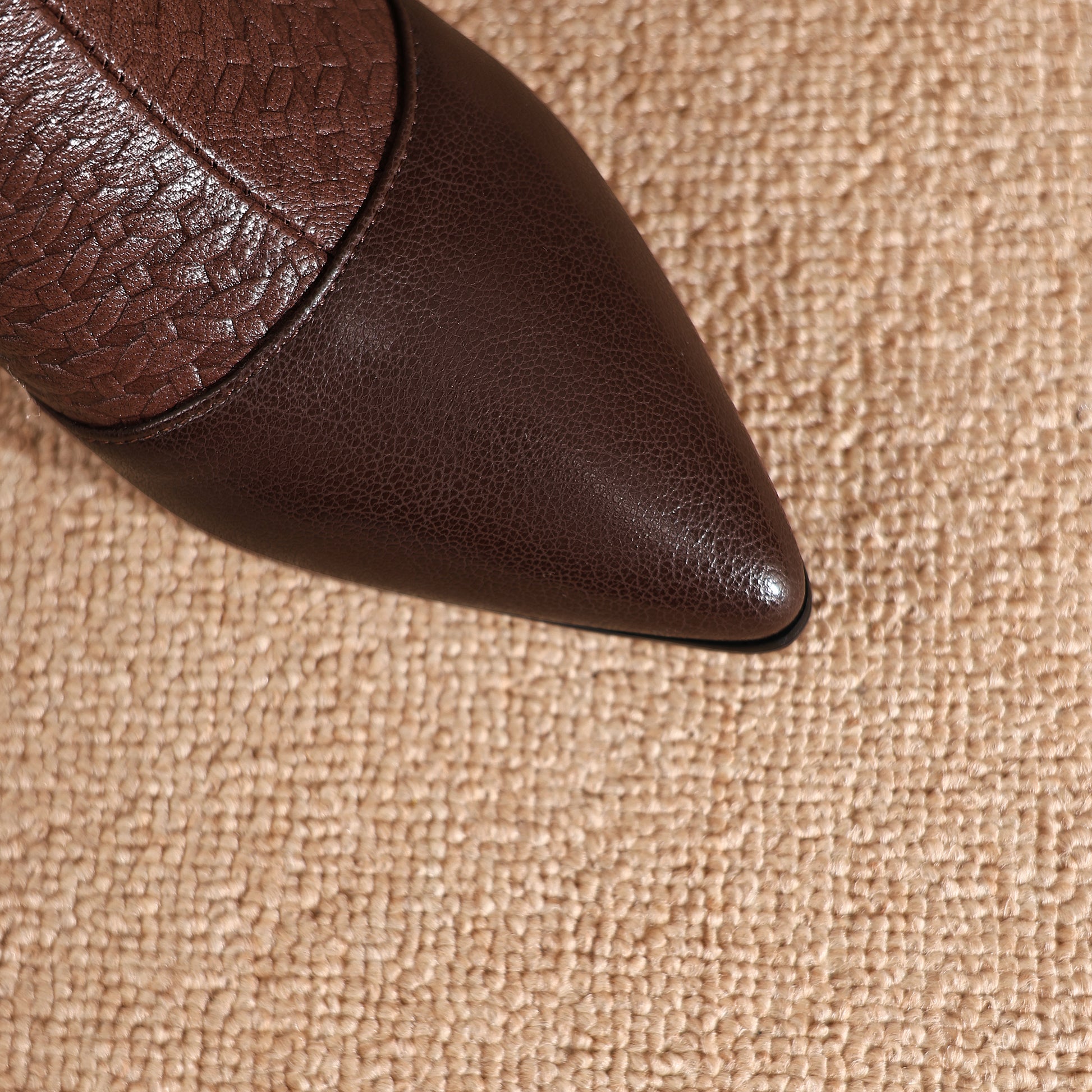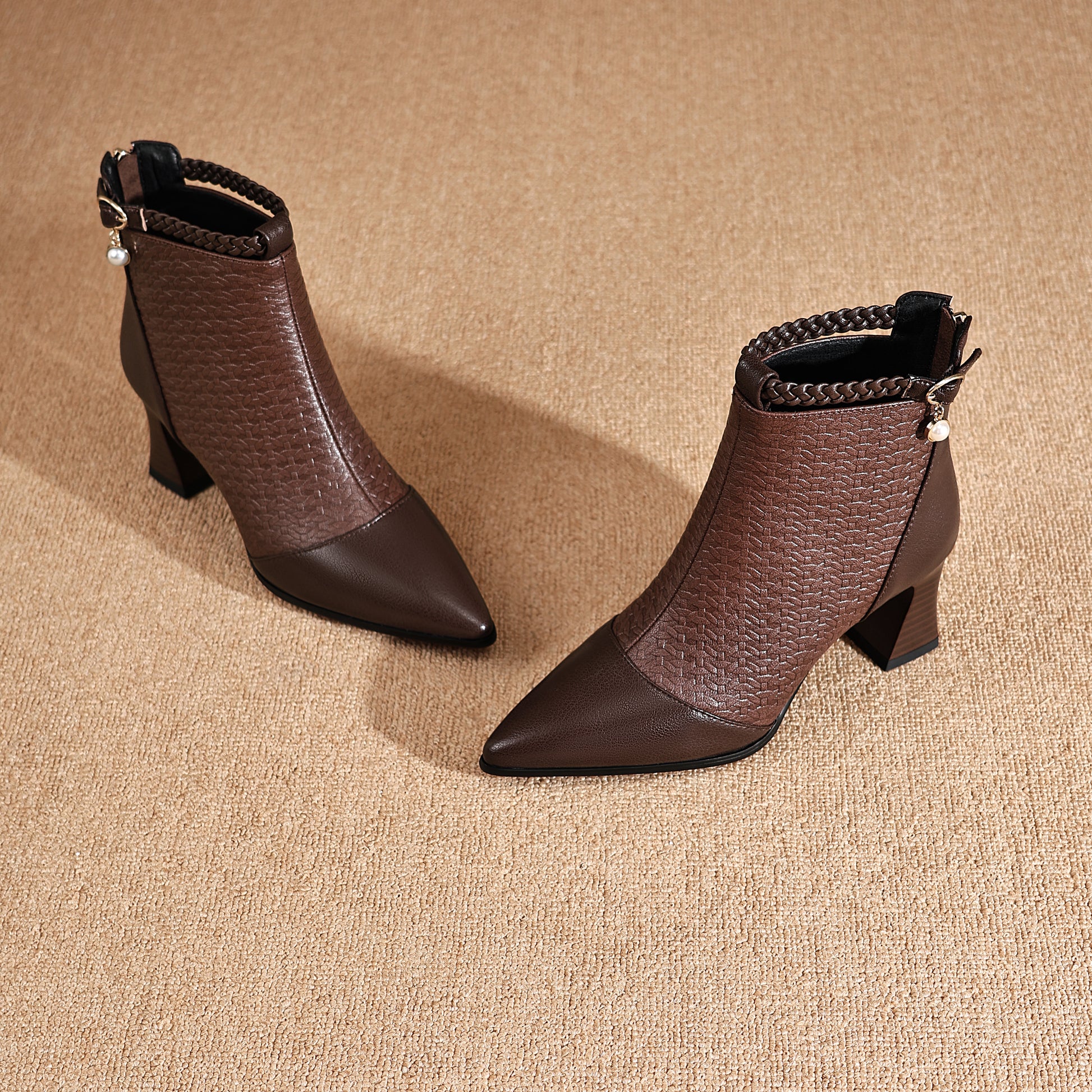 TinaCus Women's Genuine Leather Handmade Embossed Ankle Pendant Pointed Toe Spool Low Heel Ankle Booties