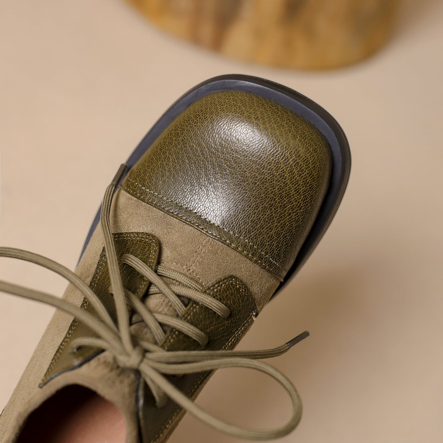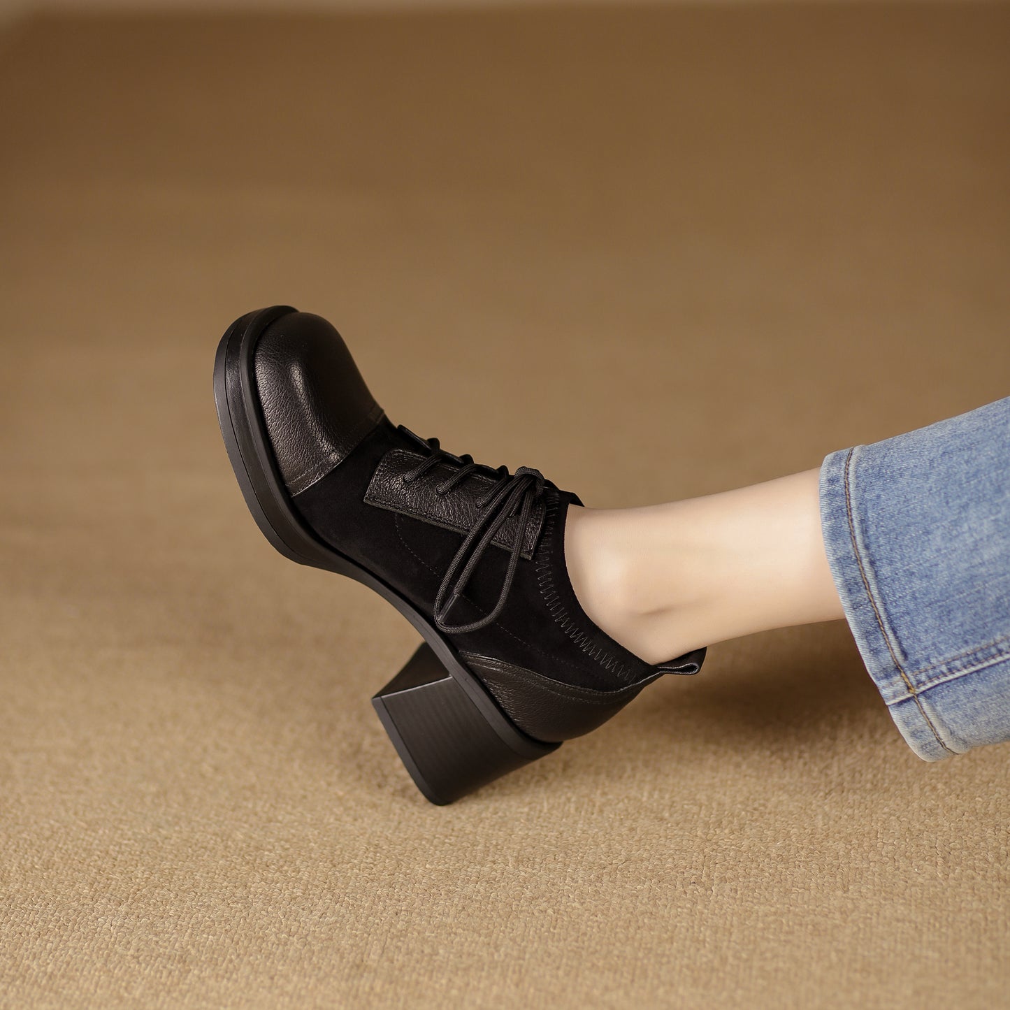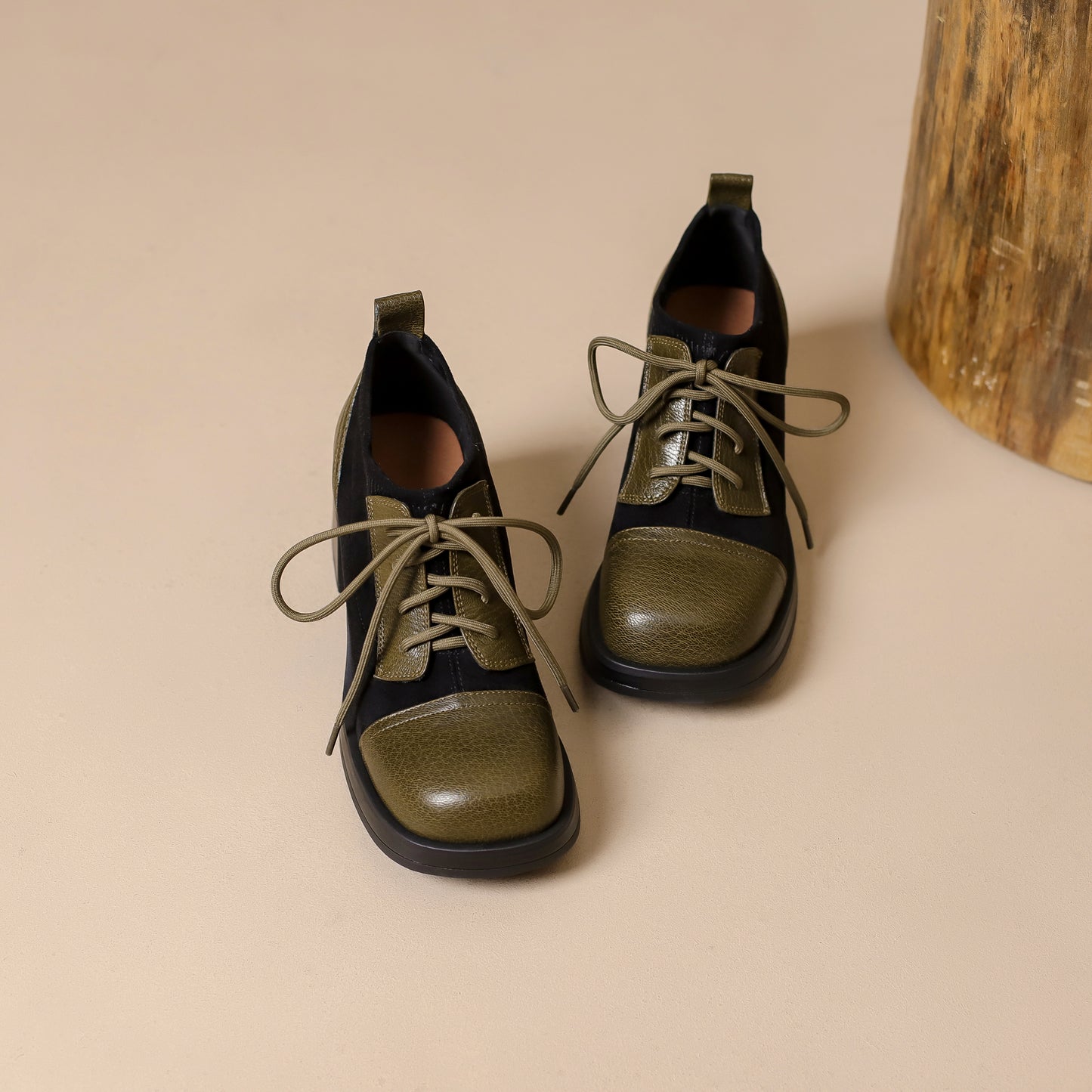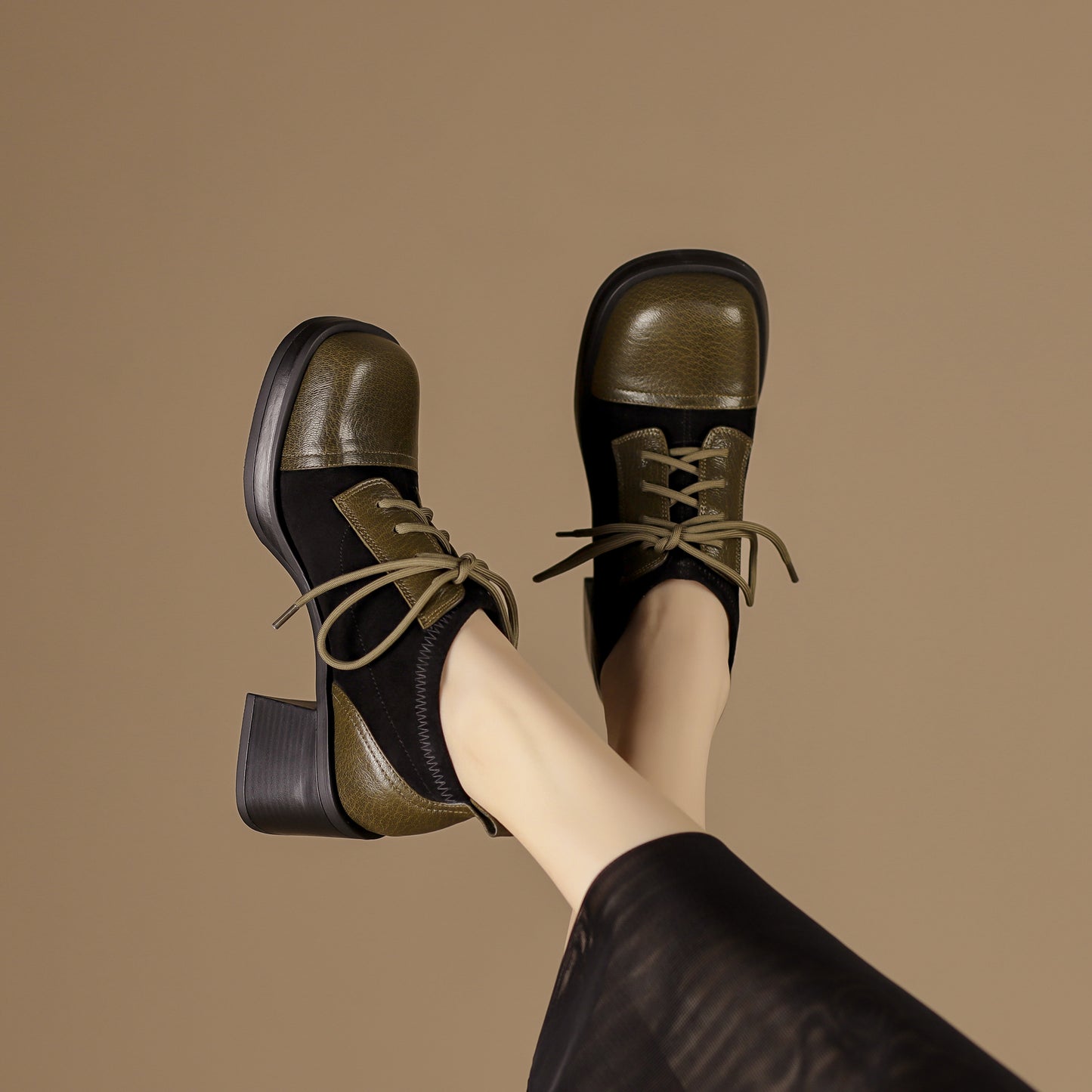 TinaCus Women's Genuine Leather Handmade Splicing Lace Up Square Toe Platform Mid Block Heel Pumps Shoes