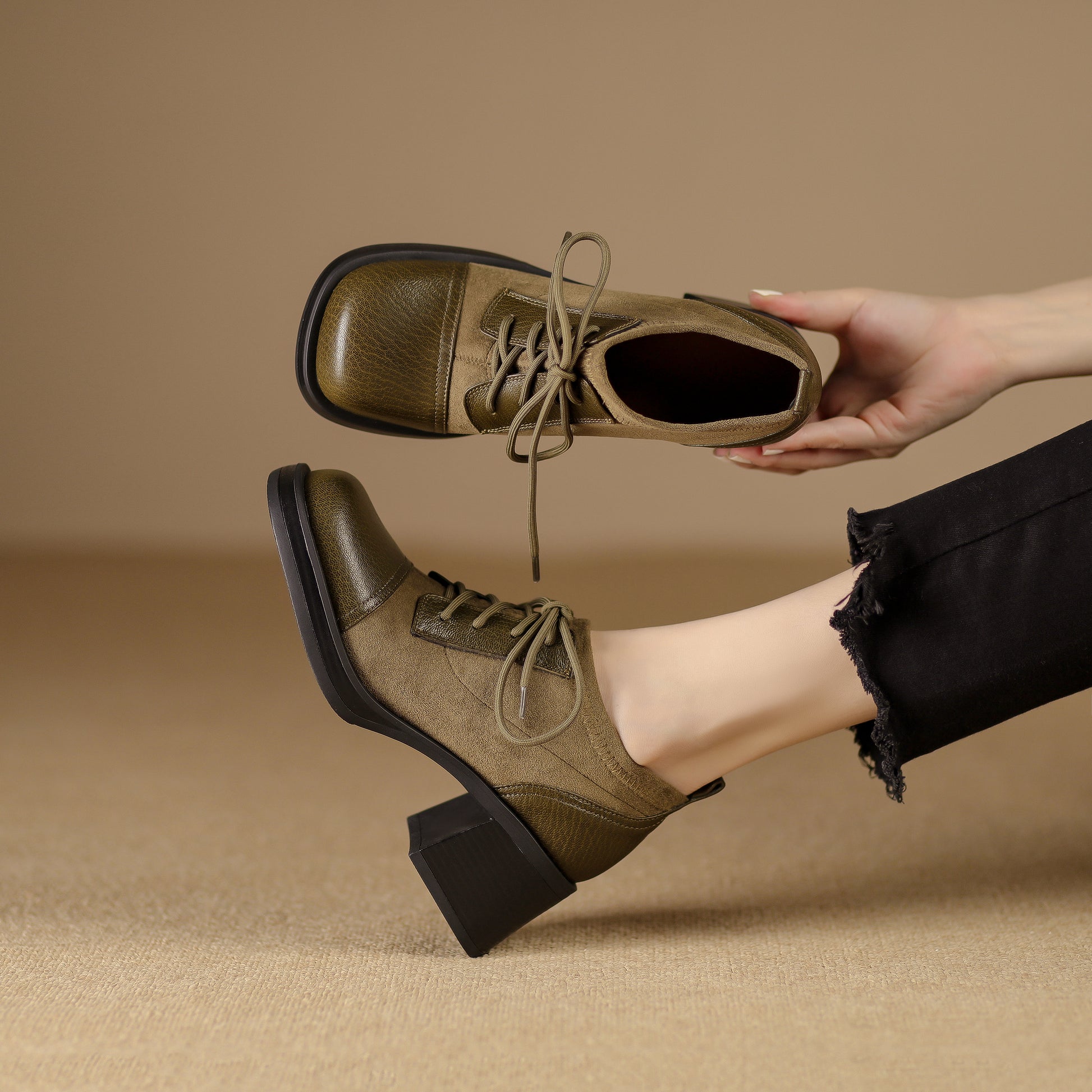 Step up your fashion game with the TinaCus Handmade Genuine Leather Square Toe Pumps Shoes.