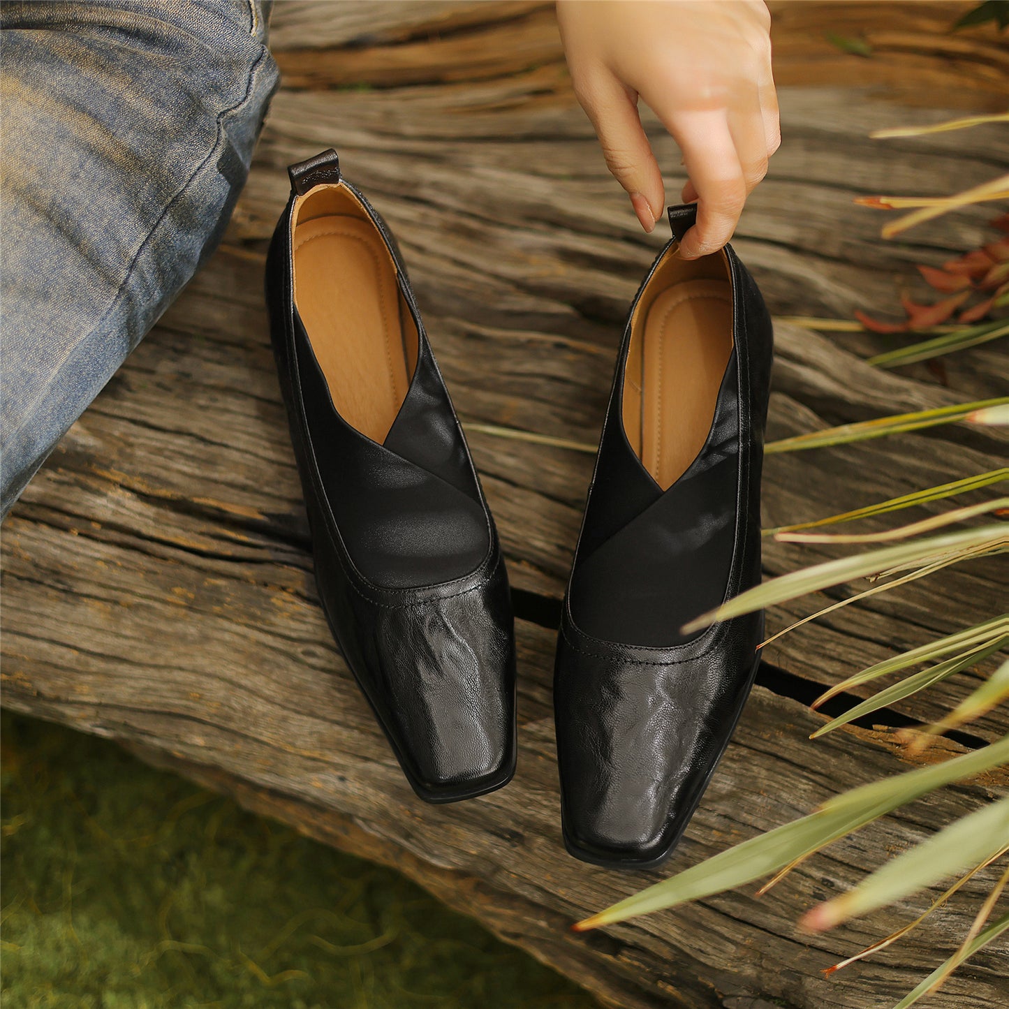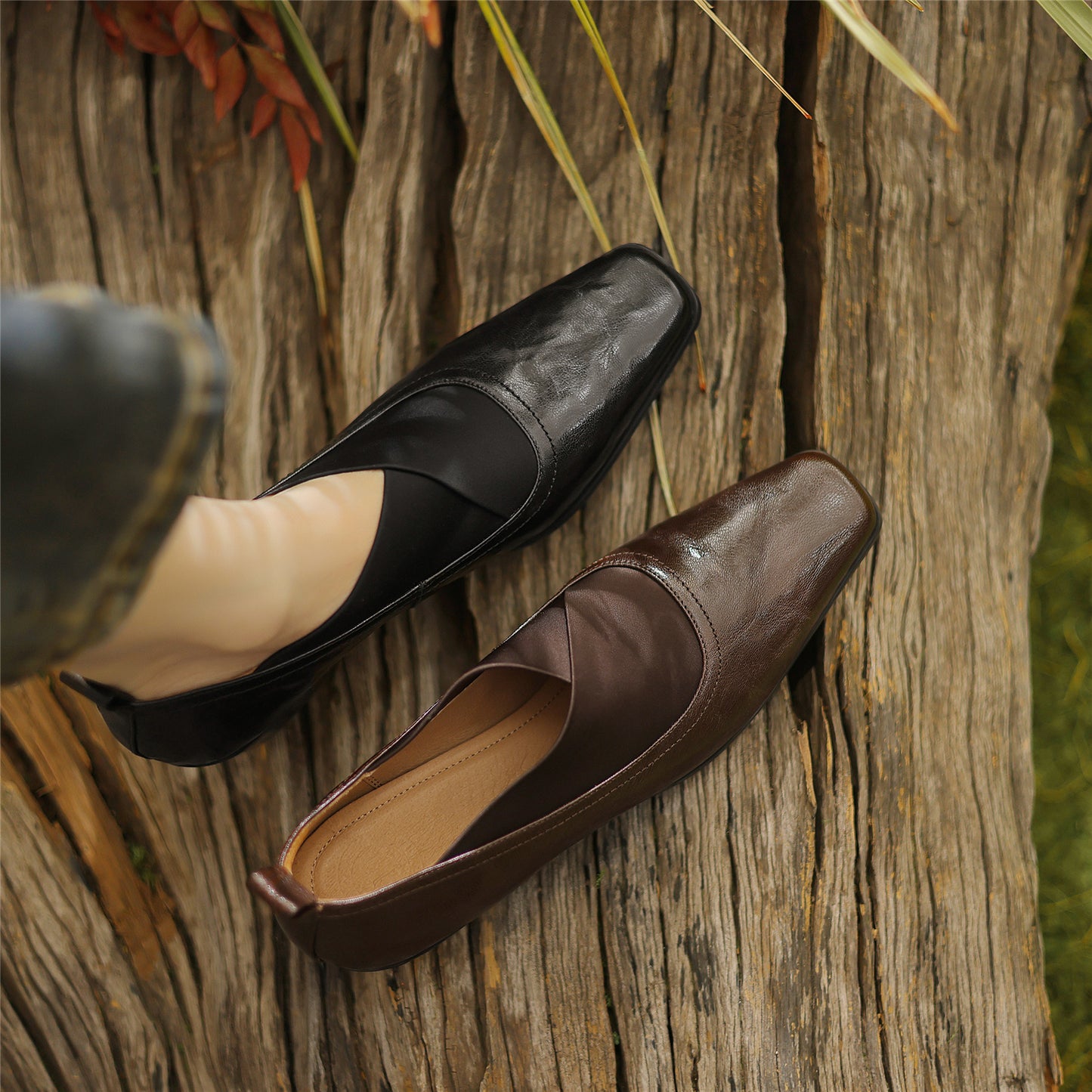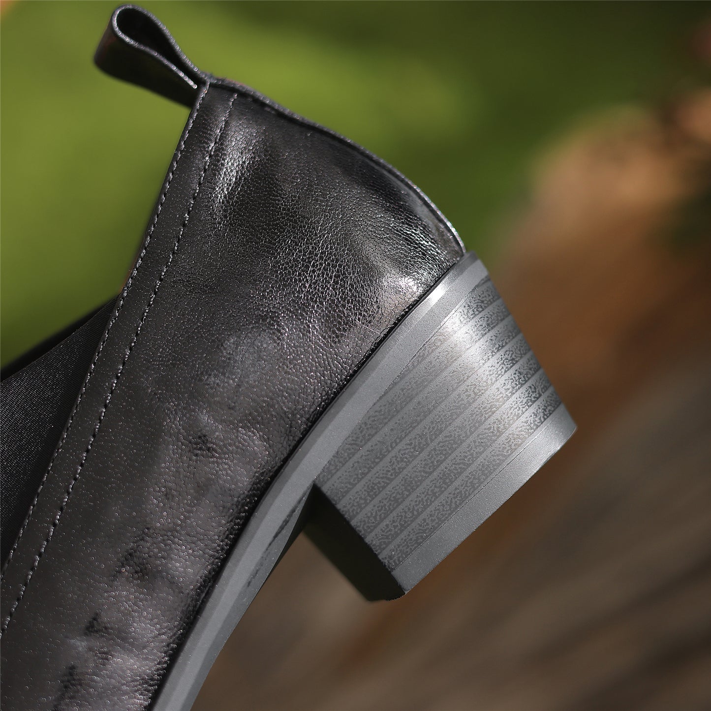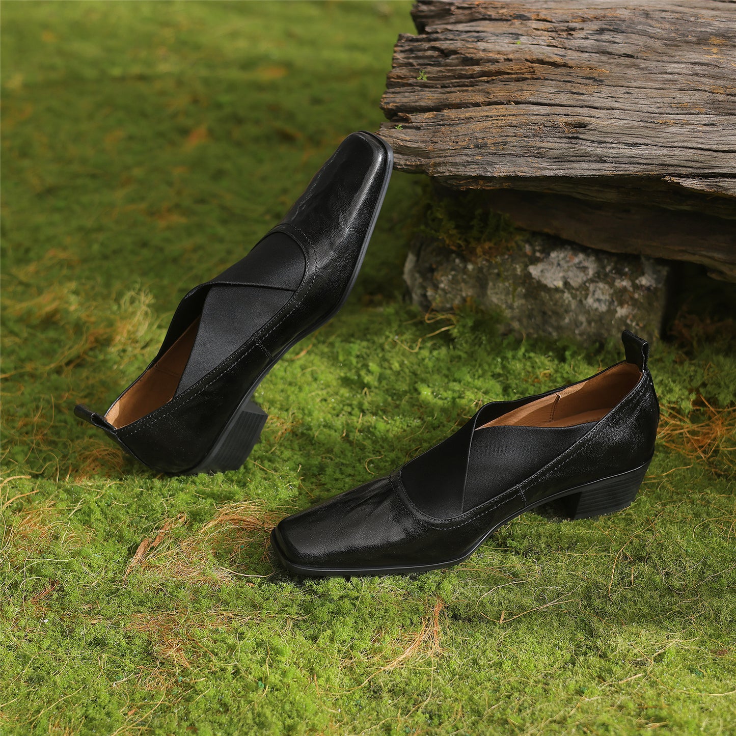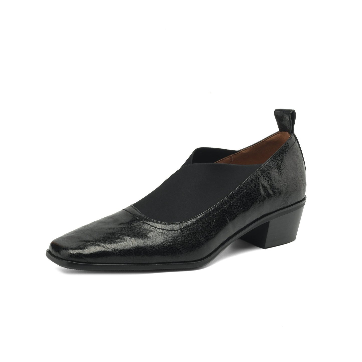 Pumps shoes with genuine leather, square toe and chunky heel can go with your dress, jeans and pants.