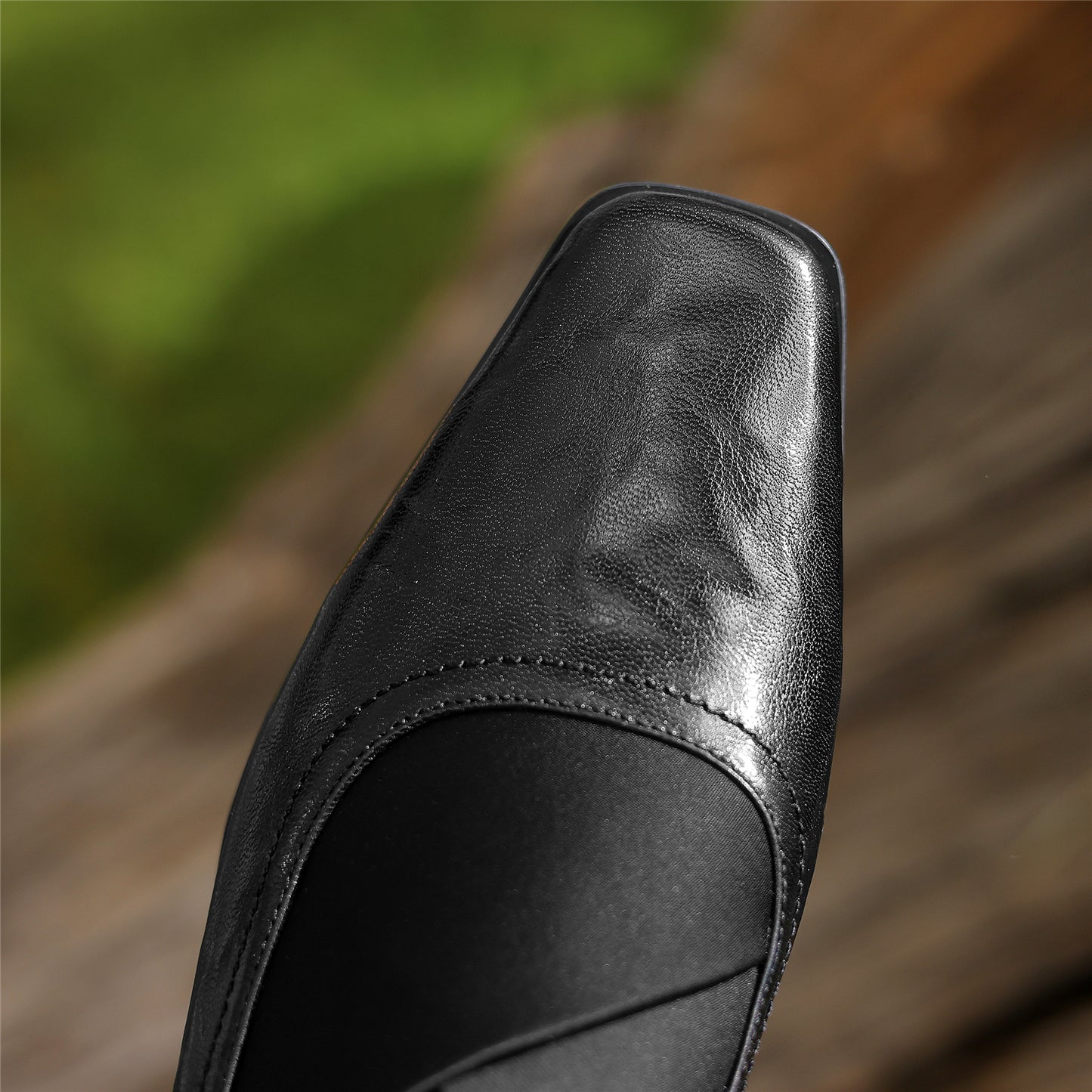 TinaCus Women's Handmade Square Toe Genuine Leather Chunky Heel Pumps