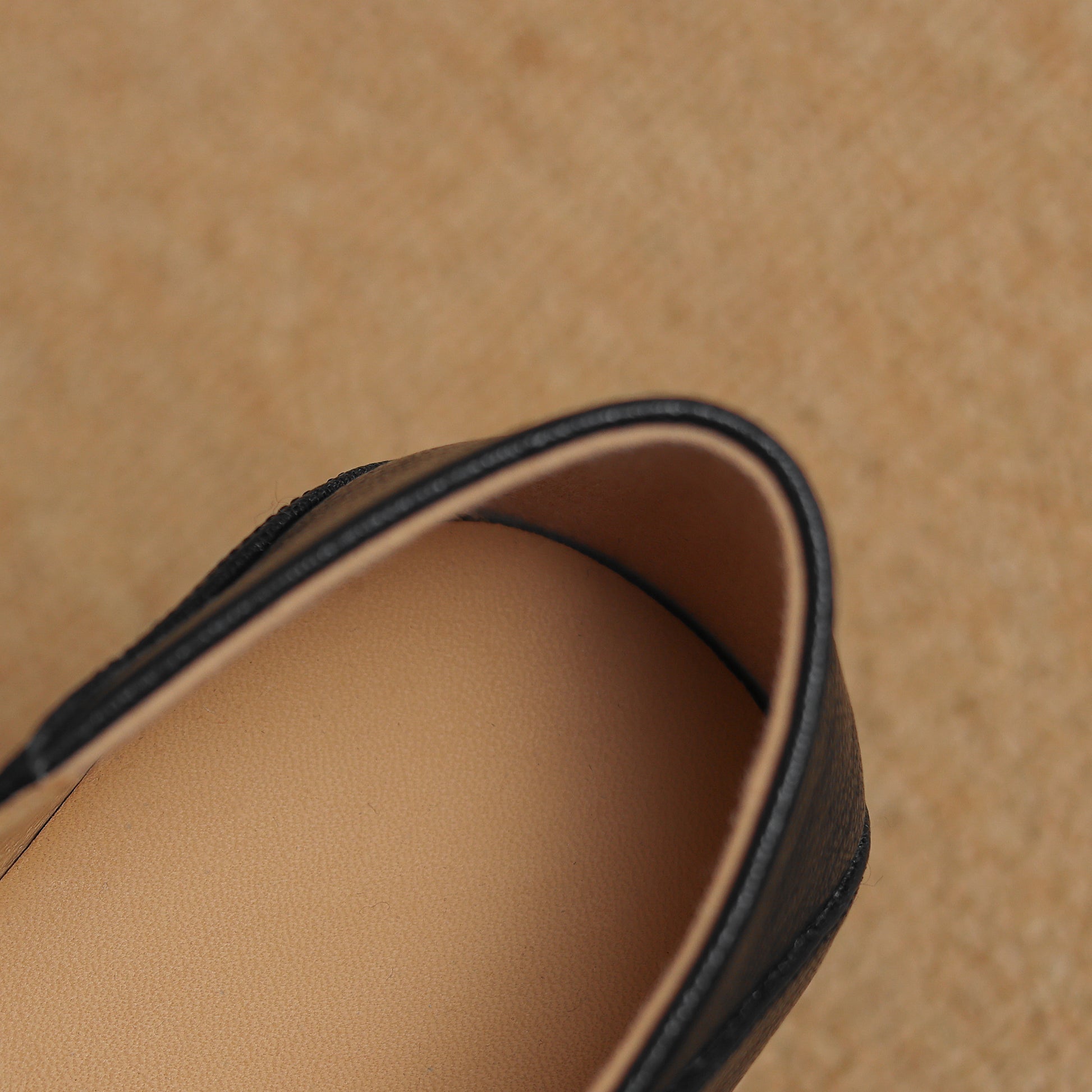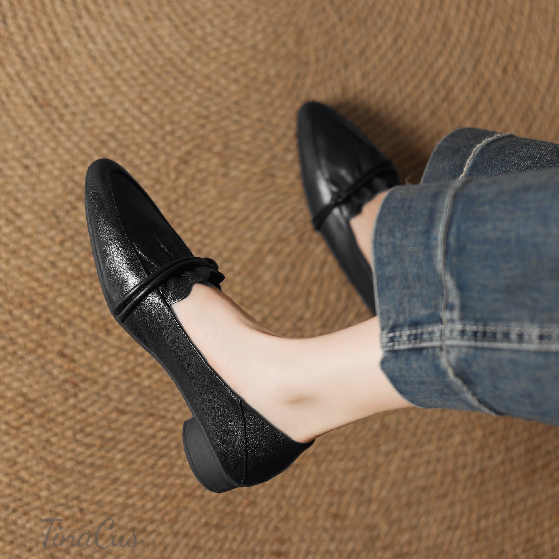Pumps shoes with pointed toe, genuine leather and low heels can make you feel comfortable