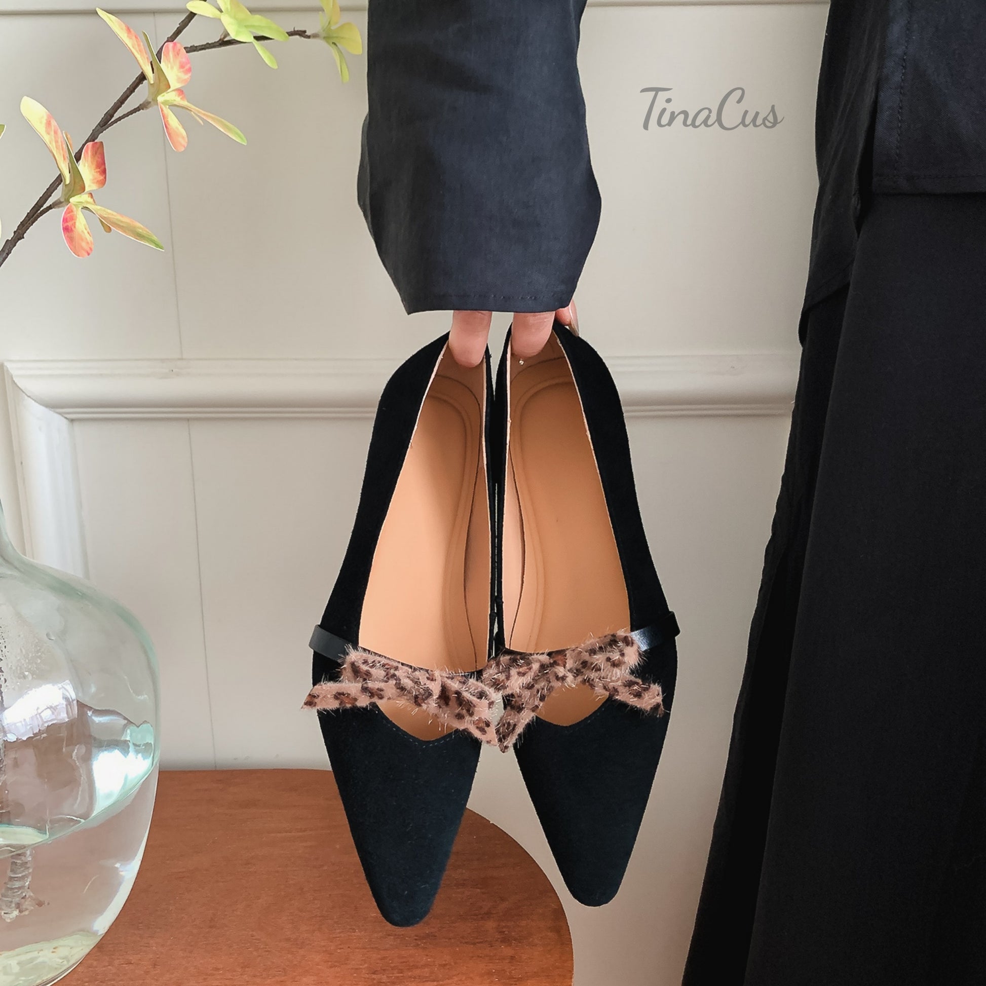 Casual shoes designed with pointed toe, suede leather, cute bowknot and low heels to keep up with fashion trend