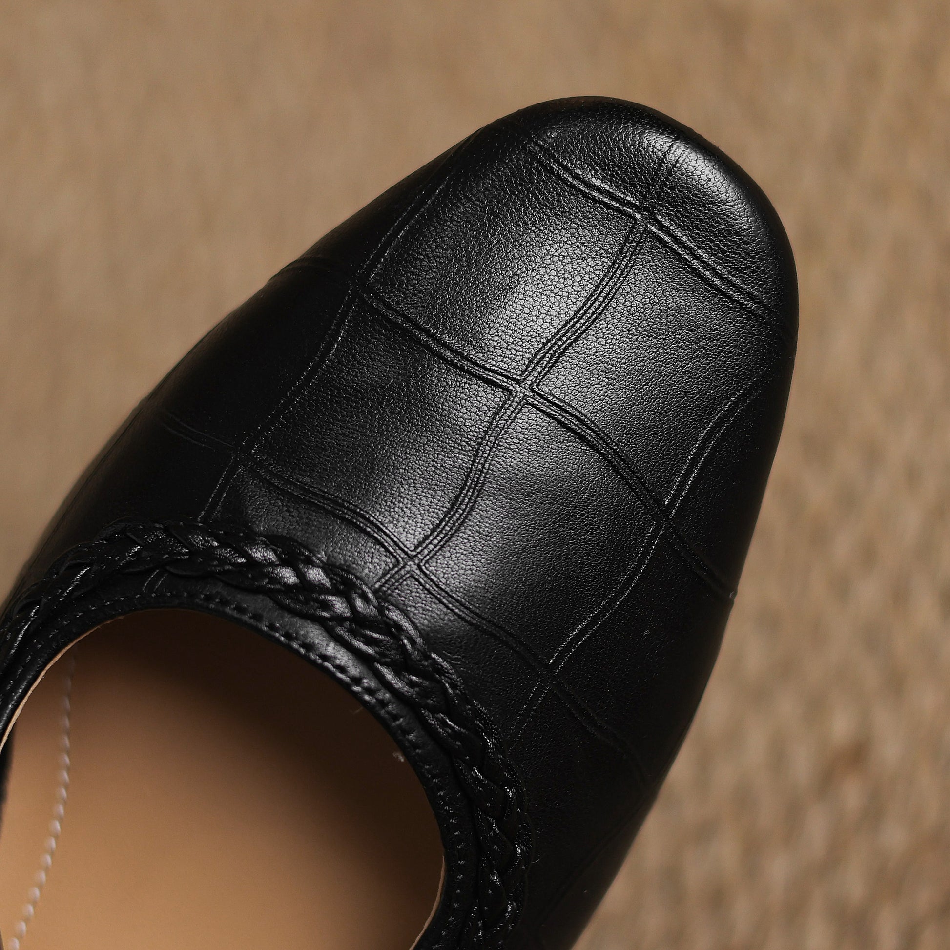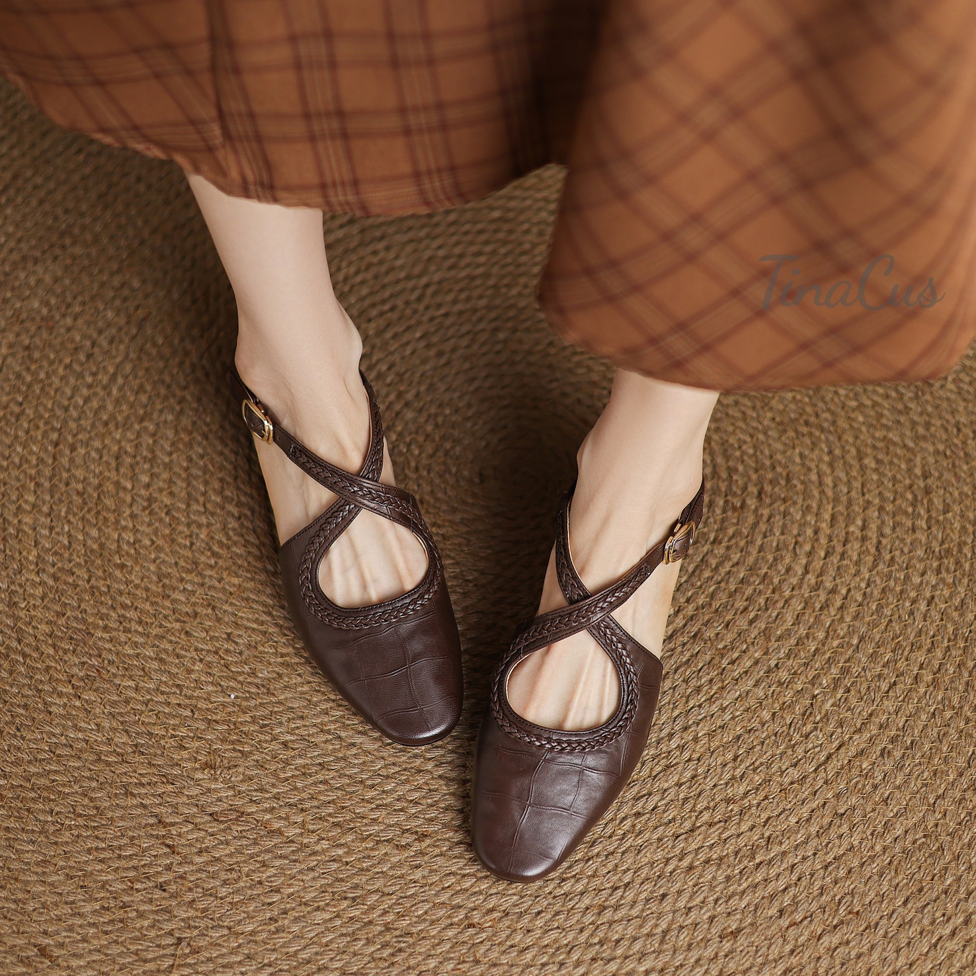 TinaCus Women's Round Toe Cross Straps Buckle Genuine Leather Handmade Low Heels Trendy Pumps Shoes