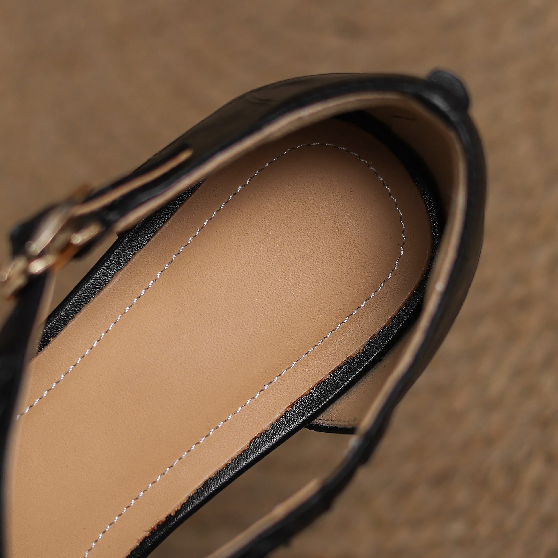Pumps shoes with round toe, genuine leather, strap buckle and low heels can make you feel comfortable
