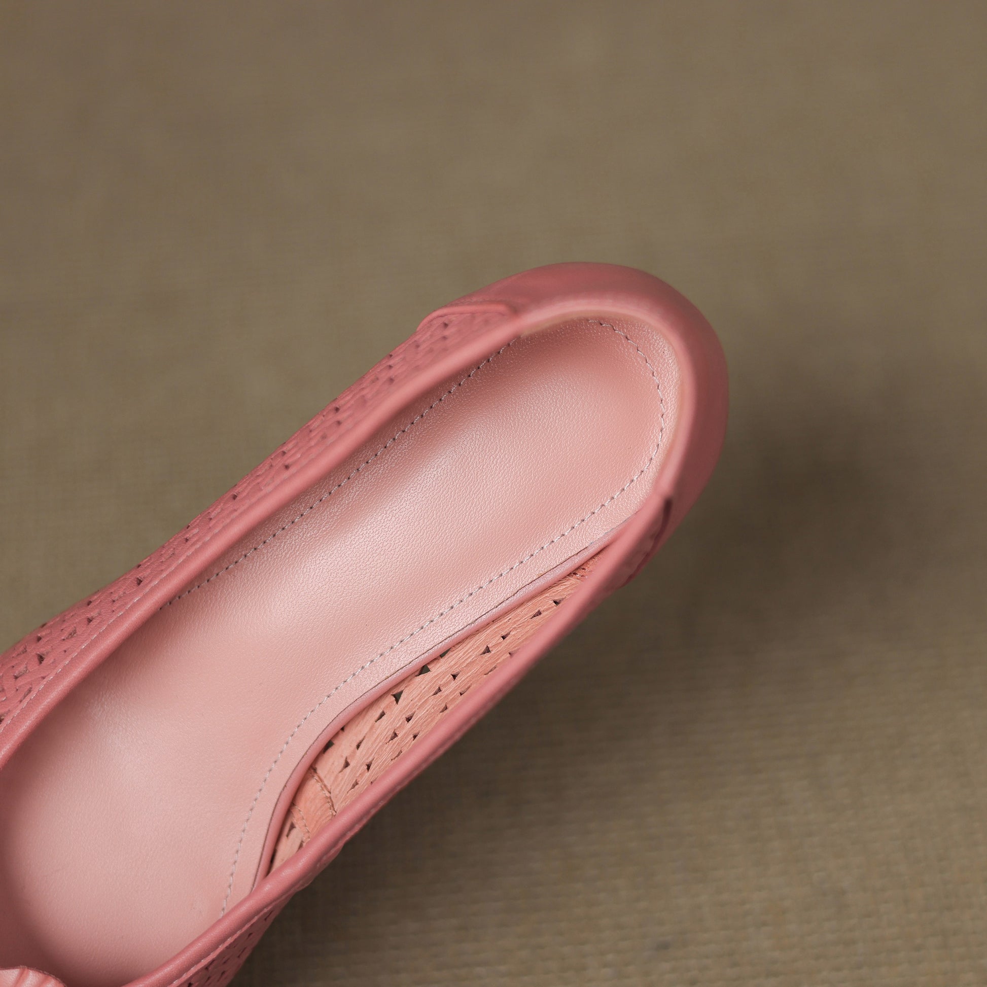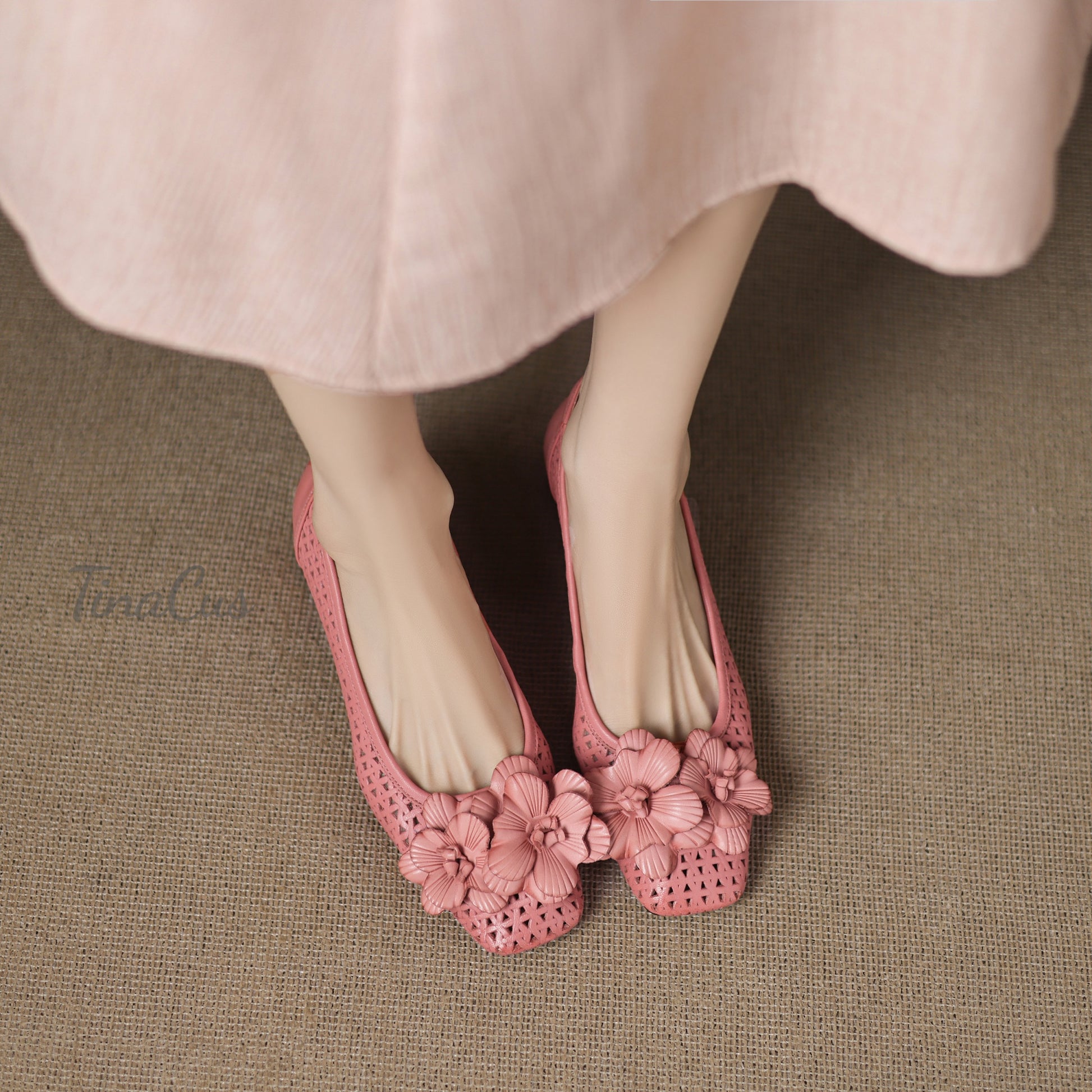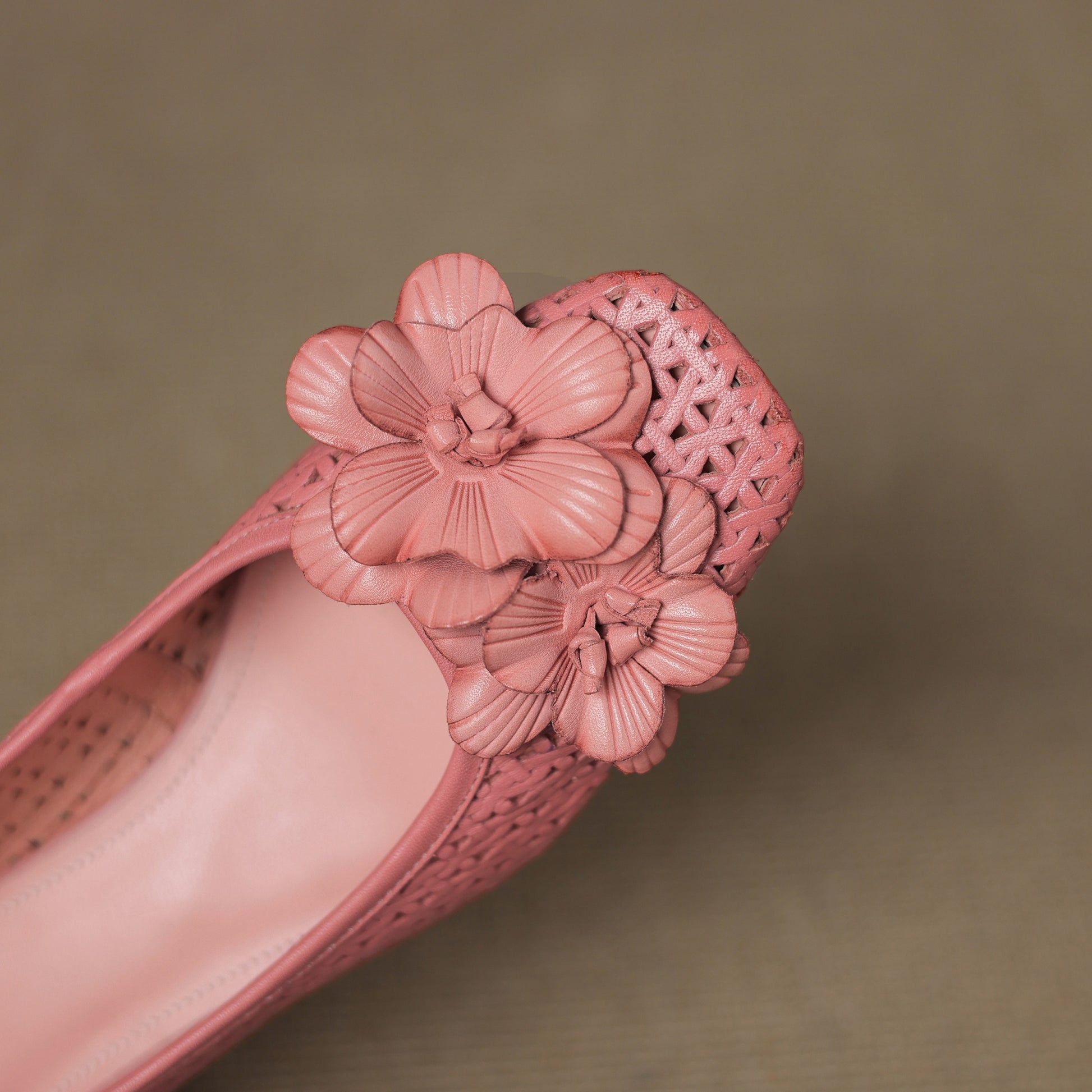 Loafers shoes with square toe, genuine leather, flowers and low heels can make you feel comfortable