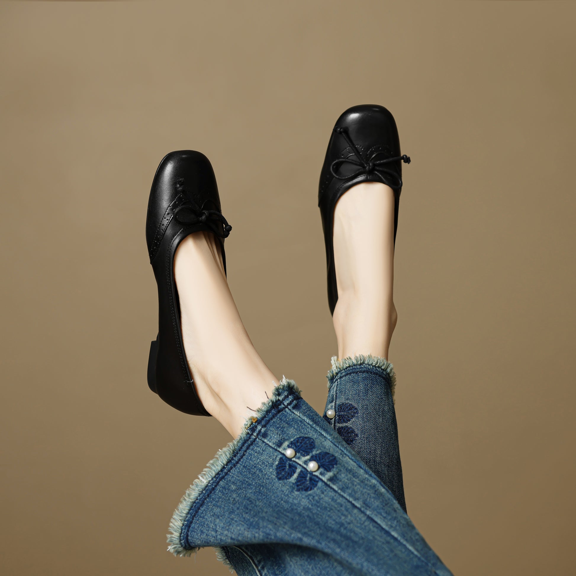 Loafers shoes with square toe, genuine leather, flowers and low heels can make you feel comfortable
