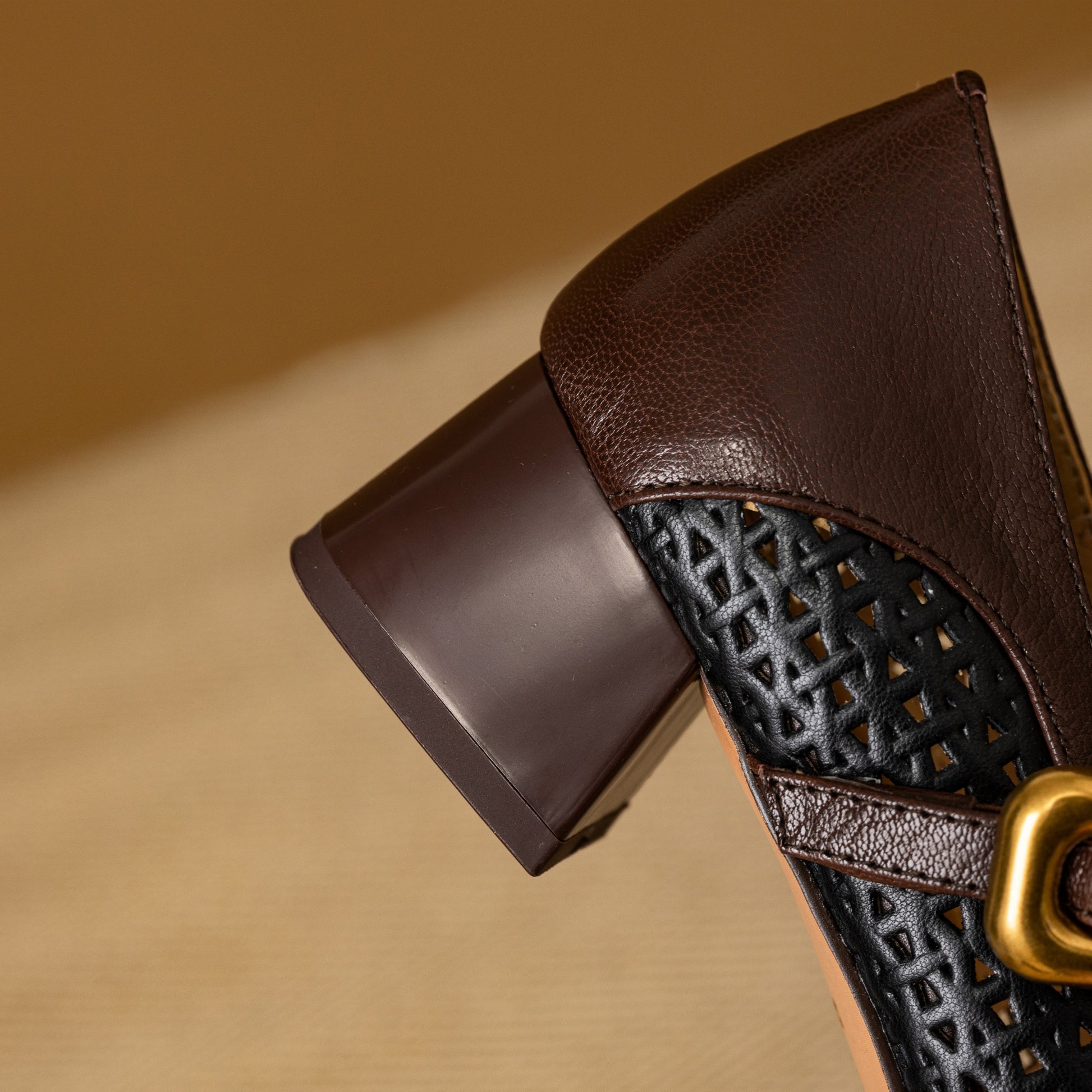 Casual shoes with square toe, genuine leather, strap buckle and low heels can make you feel comfortable